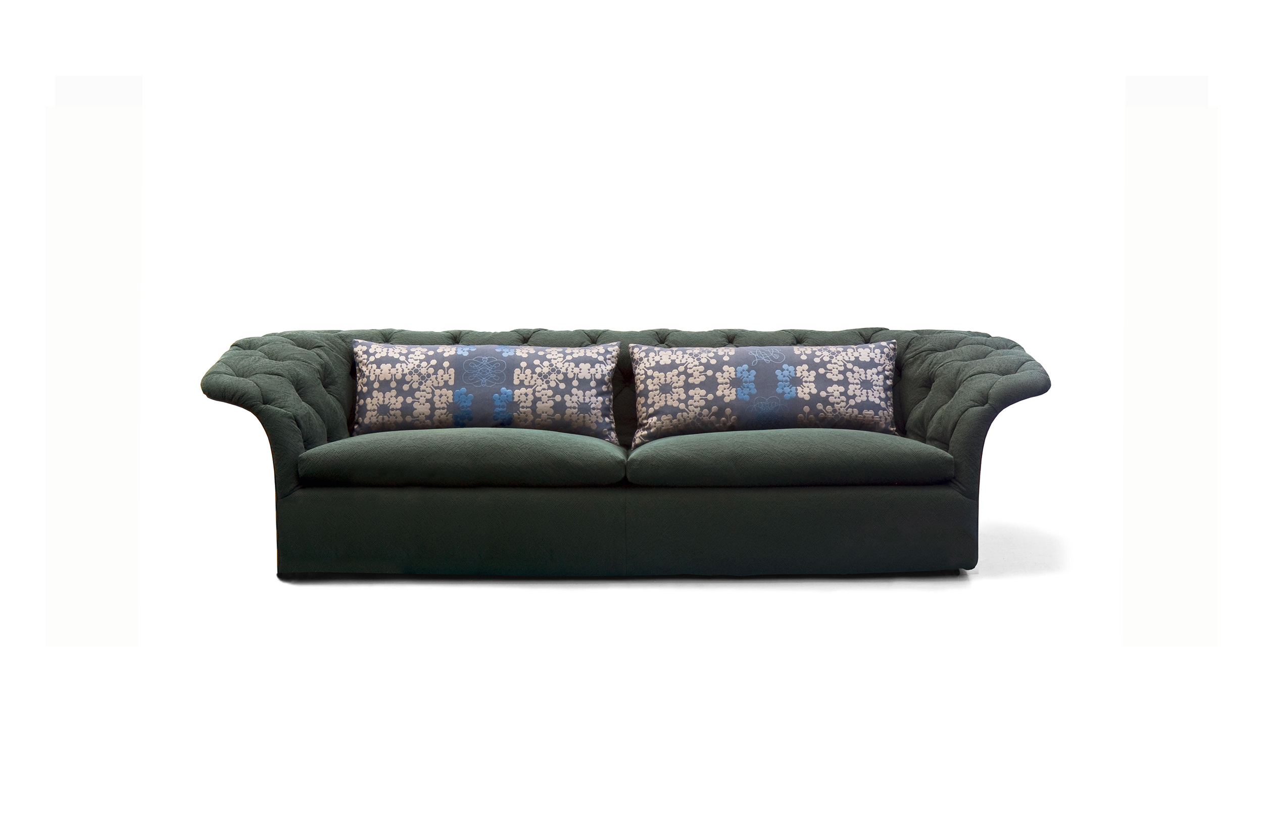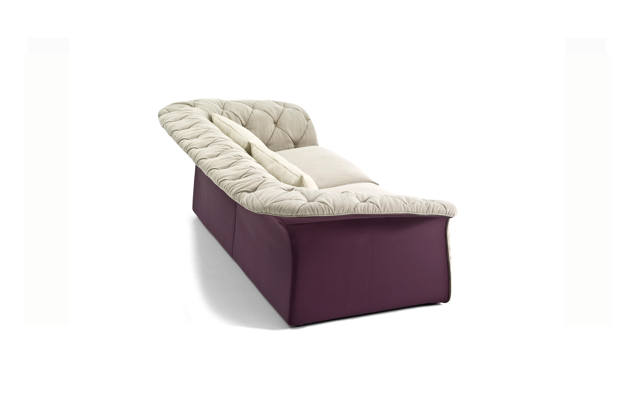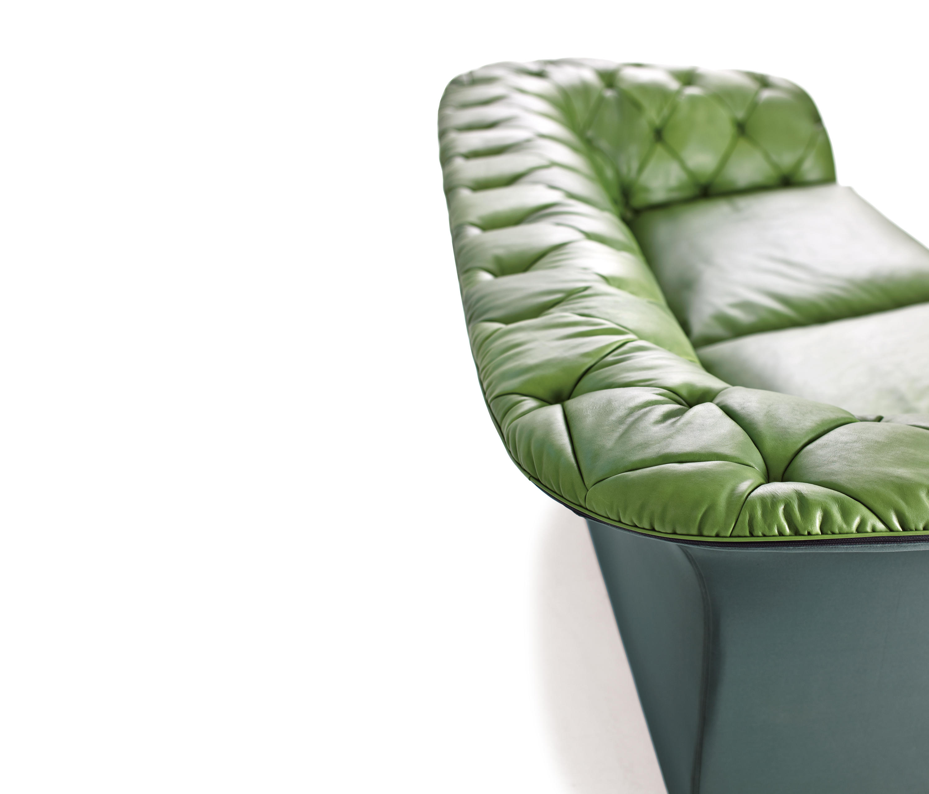 帕特丽夏·厄奎奥拉采用的是一种全新的旋转方式,革命性地改变了这一概念,她设计了一系列的产品,这些产品的形状看起来是液态的,就好像它们在框架上融化一样,以制造柔软的,舒适的,几乎随意的线条,这些布料和皮革都用按钉固定在外壳上。这些碎片似乎披着披在肩上的披巾,座椅上有各种重叠的软垫:几乎是对其覆盖层的设计、层叠的皮革和其他材料、颜色和面料类型的关注。这是一种奢侈的拼贴,当它穿过时,就会给人一种游牧式的全球精神。