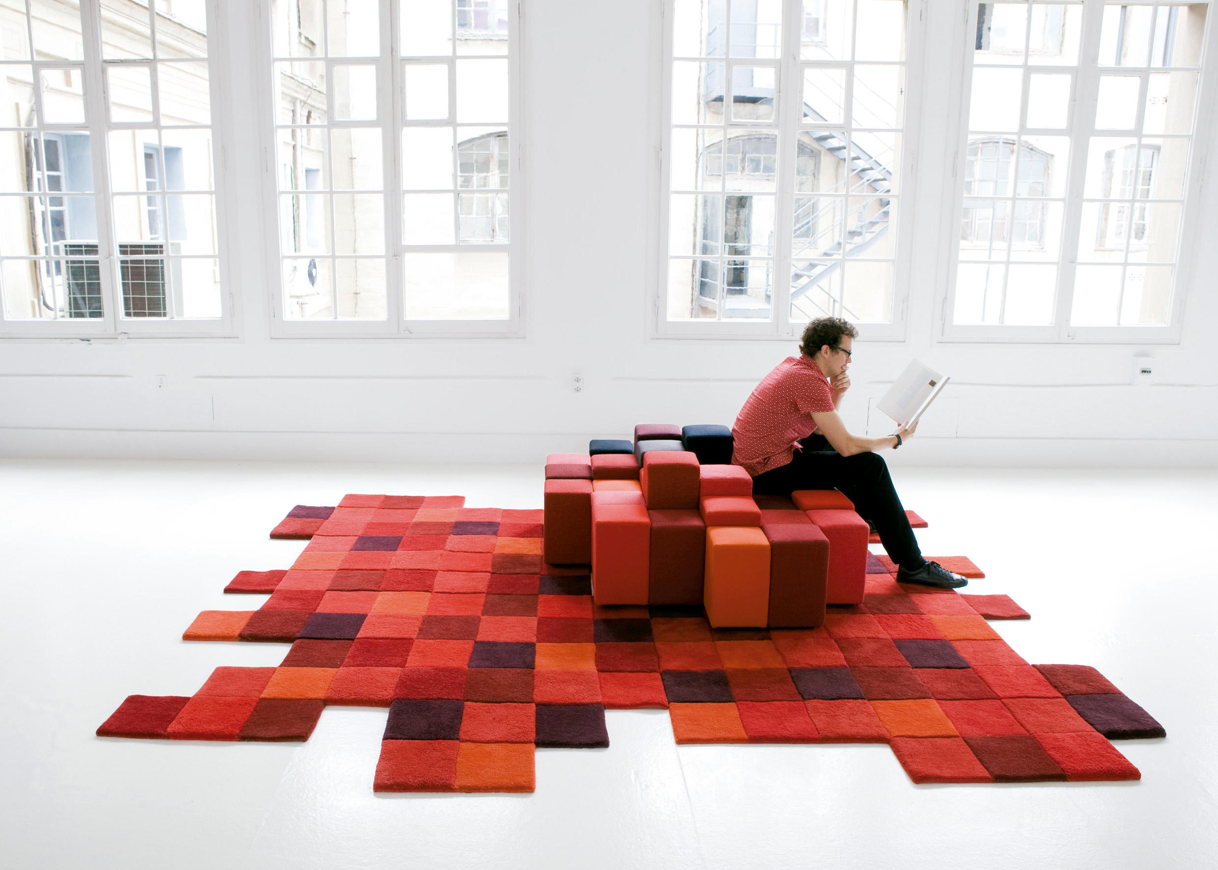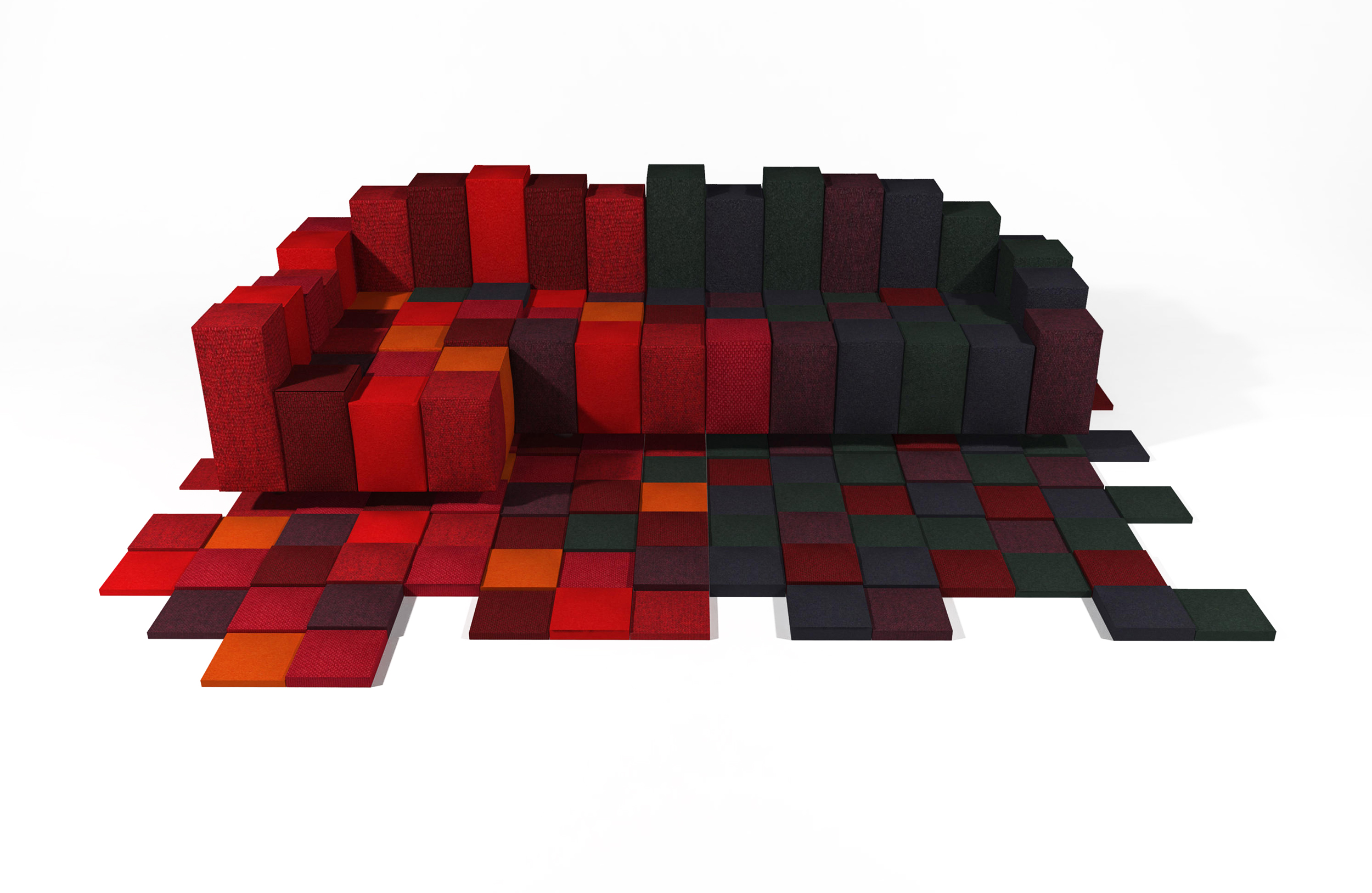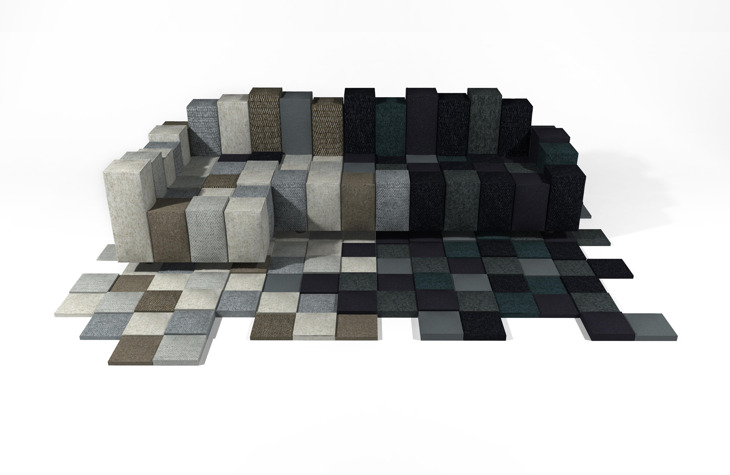 基本模块从图像的基本单元像素中获取灵感,是设计项目的起点。在一个高度范围内的正方形底座的软矩形立方体,在如何组合它们的过程中提供了完全的自由,将模块化转化为结构。无限的形状和组合是可能的,加入世界的工业设计与开放的,创造性的艺术世界的方法。看似简单的单个元素在结构上是复杂的,但制作起来却很简单。在基座上加劲,以便握住钢针,在顶部的块更软,以确保最大的舒适。