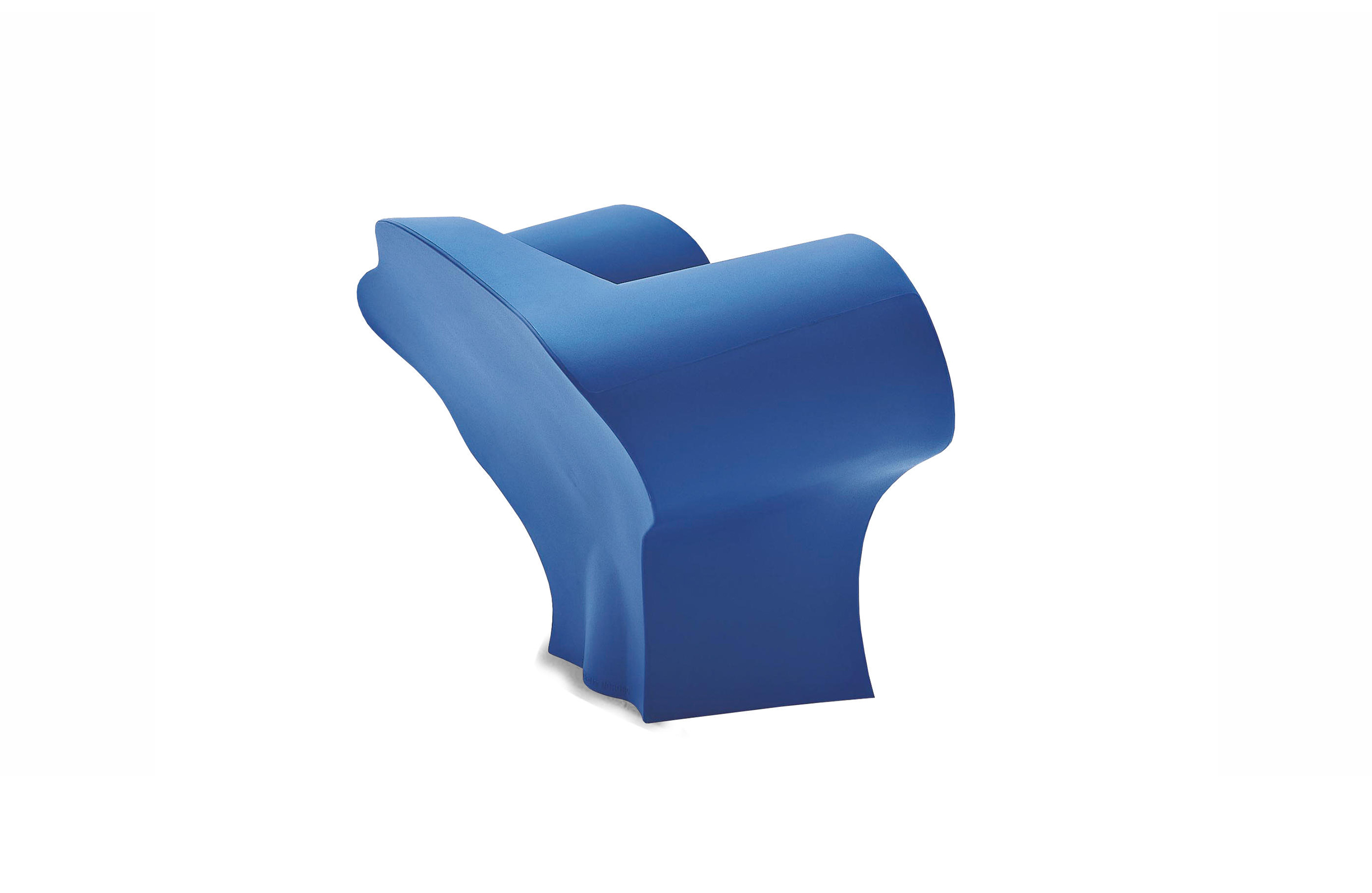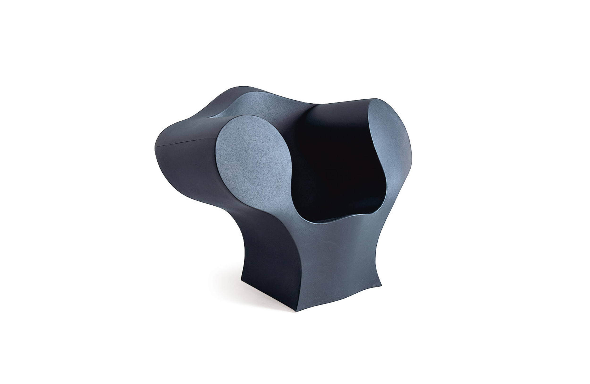 由Ron Arad在1988年设计的一个大的简单的钢椅,展示了一种简单的形式,可以在不影响设计原则的情况下,通过对材料和生产过程的重新解释而被翻译。从建设性的姿态获得的模型变成了工业生产;视觉的柔软和丰满的体积,舒适。更容易探索旋转模制和聚乙烯的使用;在冷泡中柔软的版本,用聚酯纤维包覆,触觉表面的转换;在元素的集合中,形态学和动态形式。