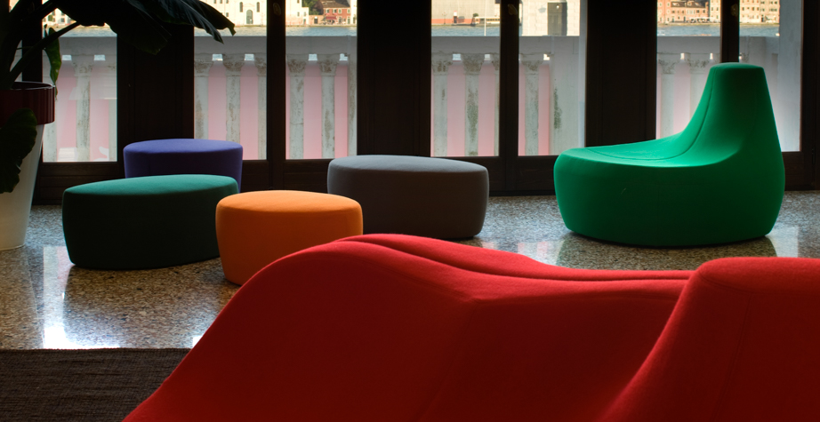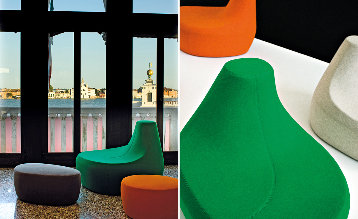 第一个Saruyama,它的地貌形态,一个非常抒情的物体,是由三个模块组成的,它们结合在一起,形成一个巨大的圆形岛屿,不同的一个从另一个中提出对座位的自由诠释。