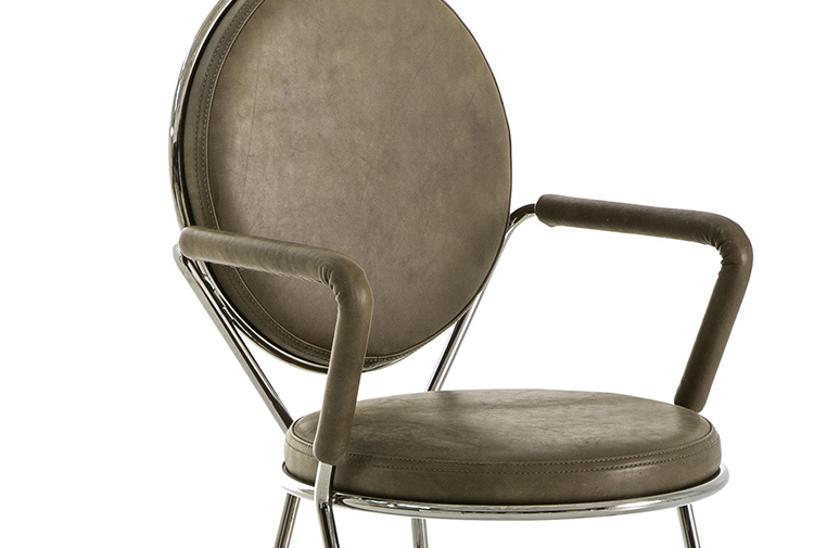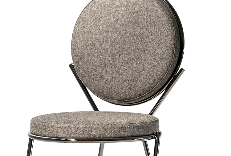 两个圆圈,两个基本模块接枝到本领域的结构几何结构中,去除了灵感,公开地传达了最大限度简化的趋势。这是高品质工业生产的前奏,这是一种优雅的经济,由镀铬钢框架提供的可能性表达,将设计结构设计成一个完整的座位家庭。这样,一把椅子和一把凳子就诞生了,没有扶手,加上一个小小的双座沙发,这是一种精致的正式进化,由良好的品味和阶级所决定。这是一种回归秩序,向一种同时奢华和合成的语言过渡。