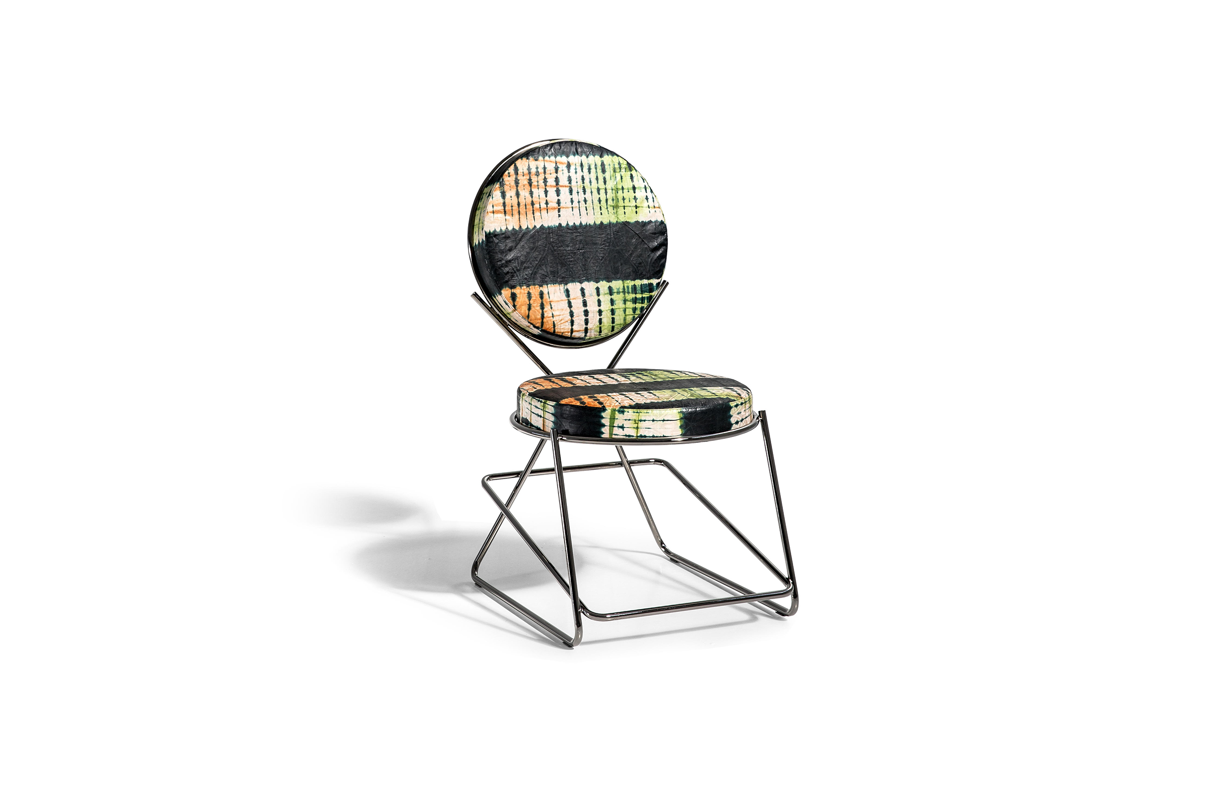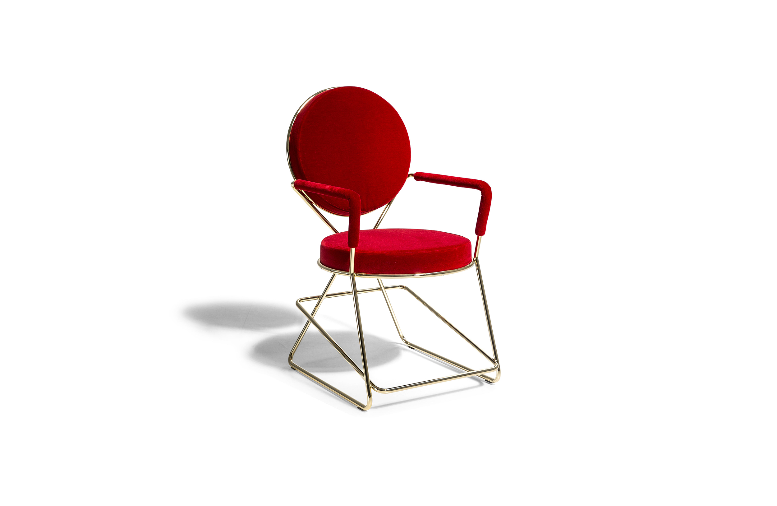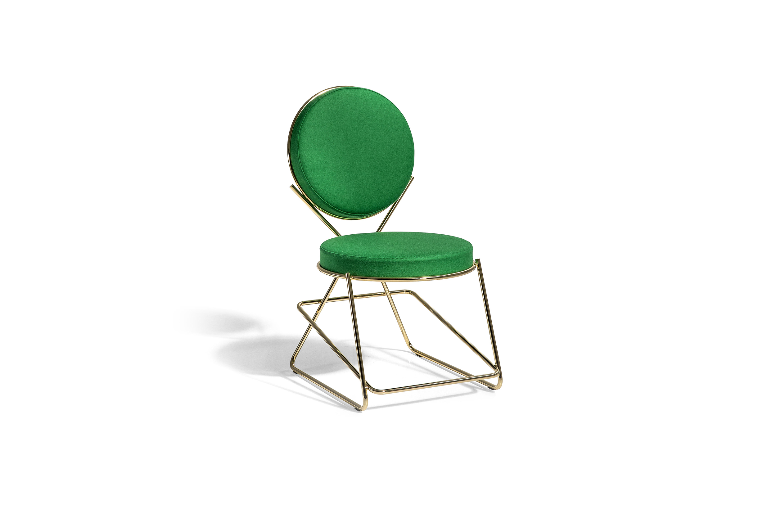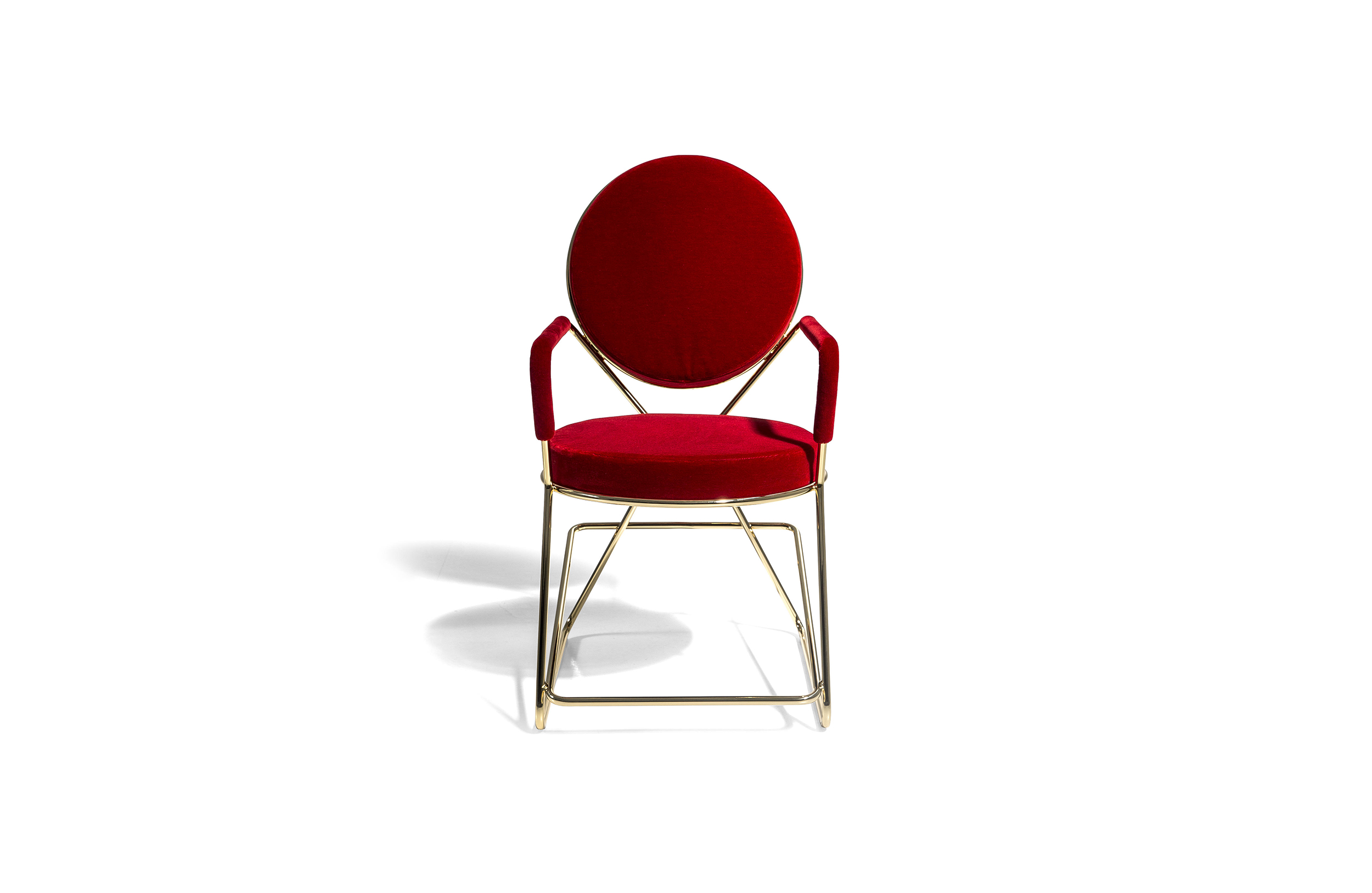 两个圆圈,两个基本模块接枝到本领域的结构几何结构中,去除了灵感,公开地传达了最大限度简化的趋势。这是高品质工业生产的前奏,这是一种优雅的经济,由镀铬钢框架提供的可能性表达,将设计结构设计成一个完整的座位家庭。这样,一把椅子和一把凳子就诞生了,没有扶手,加上一个小小的双座沙发,这是一种精致的正式进化,由良好的品味和阶级所决定。这是一种回归秩序,向一种同时奢华和合成的语言过渡。