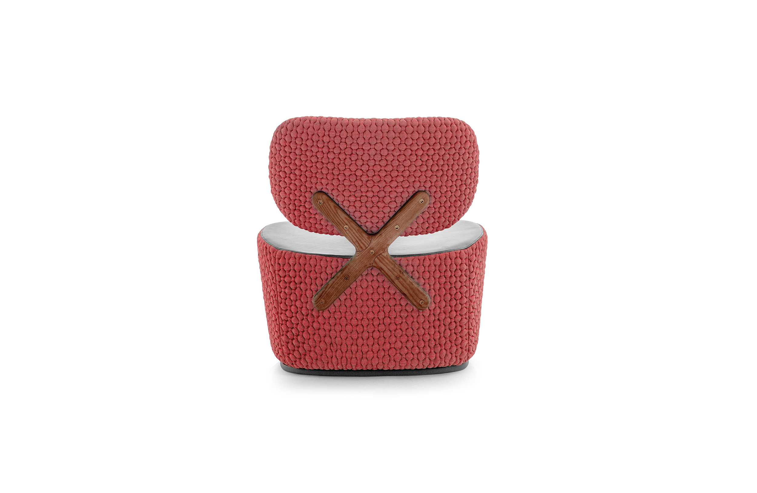 一种简单的线条,一种休闲的风格,从第一眼就能看出一种开放和放松的流行气氛。这个名字介绍了一个结构的存在,同时装饰元素,一个带有X形的木制挂钩,裸露的关节,它与椭圆形的背部,细长和轻微凸起,到座位底部。一张扶手椅和一个没有扶手的小沙发,通过它们的形状和比例,看起来就像一种自然的发展。这种小尺寸的椅子可以让X-chair在酒店大厅和商店或餐厅的接待区都合适。