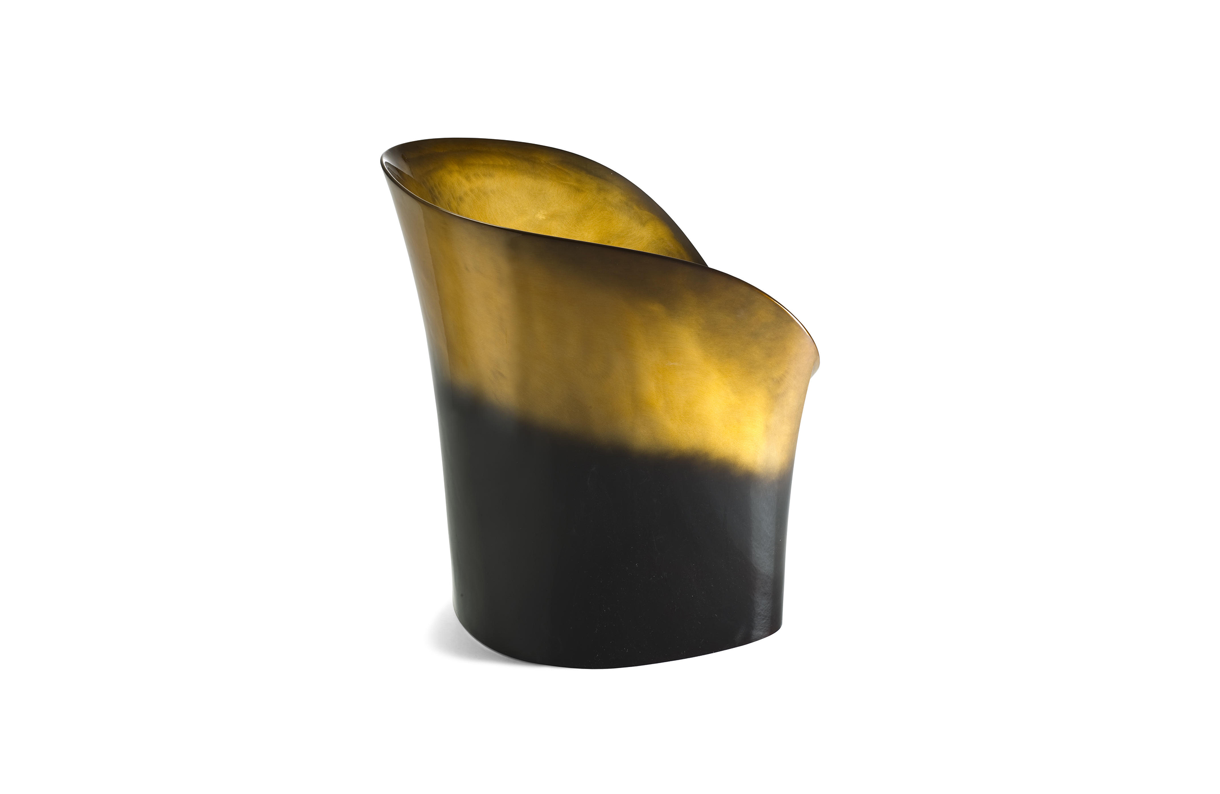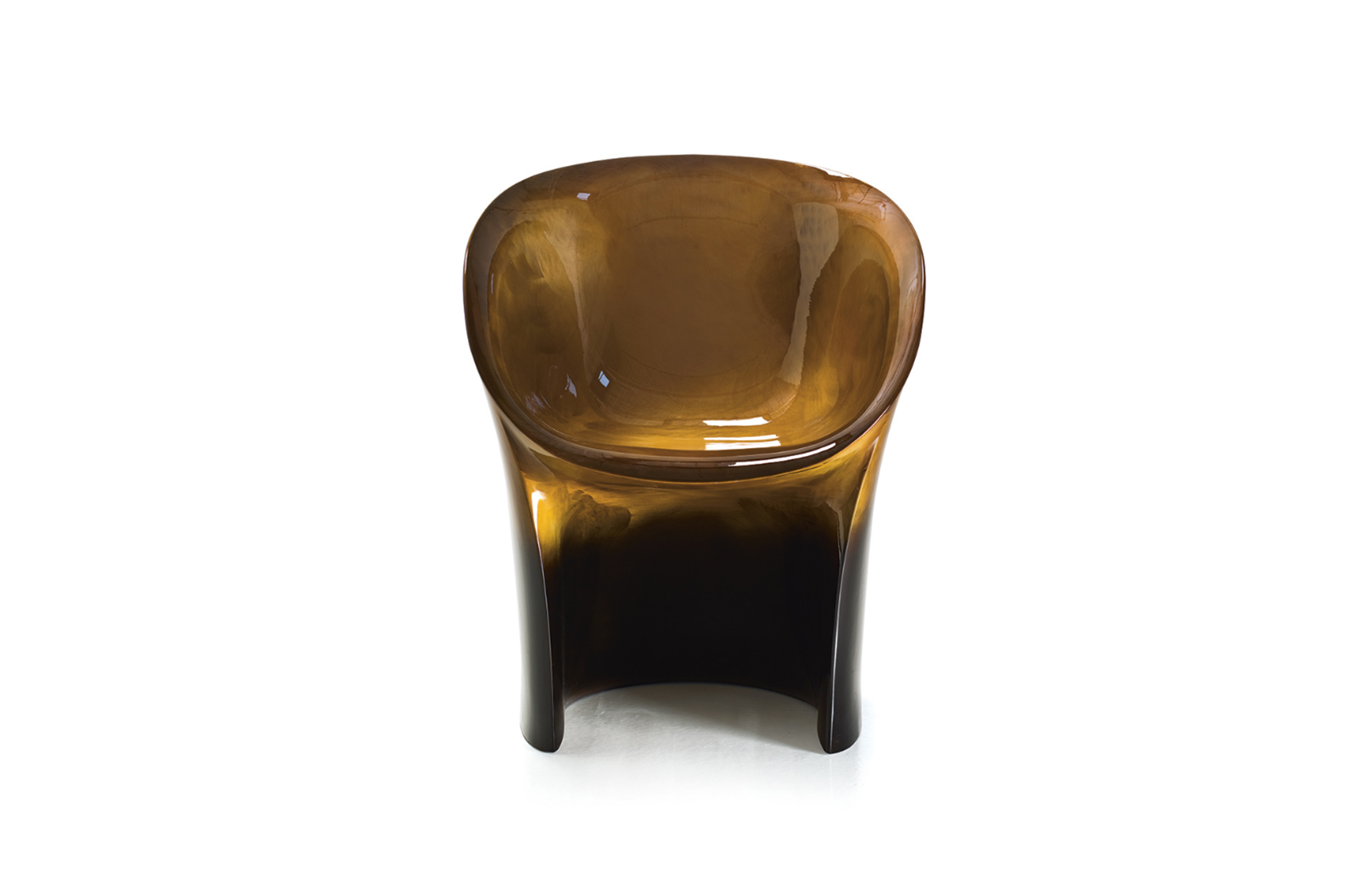 空隙和空间在完美的形式和谐中移动。移动的,流动的线条给椅子的轮廓似乎是转瞬即逝而不是固体,吸收和扩散一个微弱的,精致的辉光。在月球上,大小是一种错觉。从侧面看,座椅的曲线与底座的圆柱形结合在一起,让人联想起盛开的花朵,在这种严格的几何秩序下对有机的让步。从前面看,当光线出现和消失时,座位上的光芒就会散发出迷人的魔力。这种形式如此新颖的原因是来自不同层面的回响。它是一种新的三维形式,它加强了作品的时尚线条和月亮般的质感,这种质感源自于实体与消逝的相互作用。