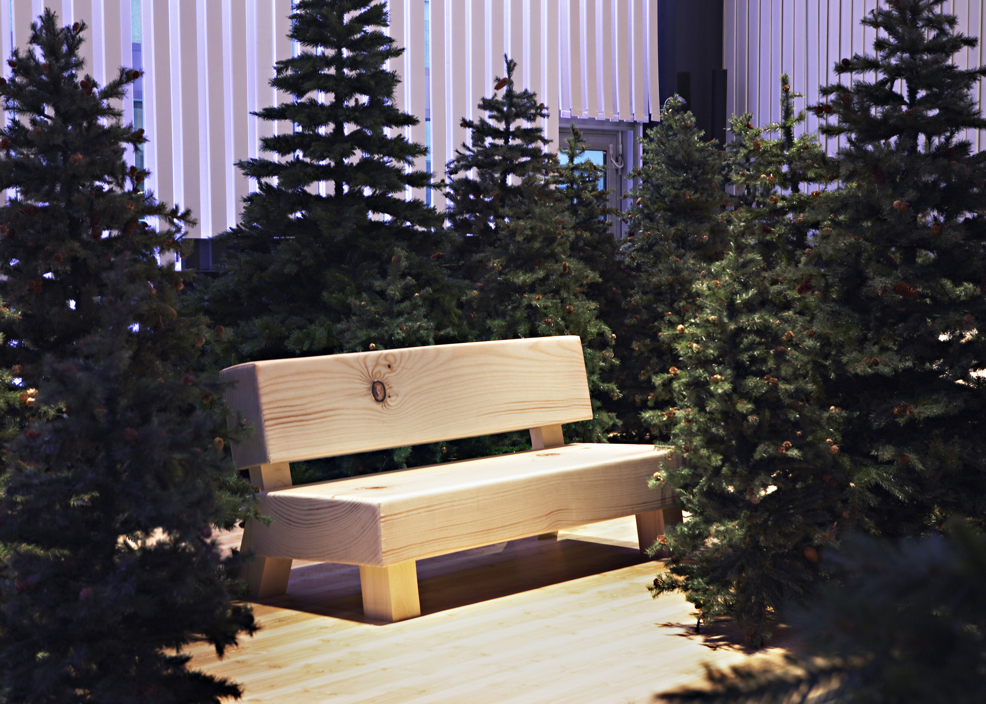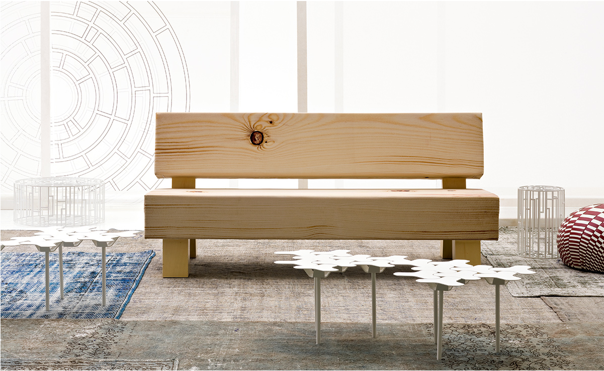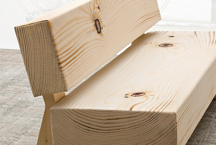 触摸它并感到惊讶:木头是柔软的,仅仅是一个超级逼真的数码照片打印的效果。在“树皮”下面是不变形,不同密度的泡沫,而框架是实木的,腿是在松木胶合板上,有可调节的高度滑翔。