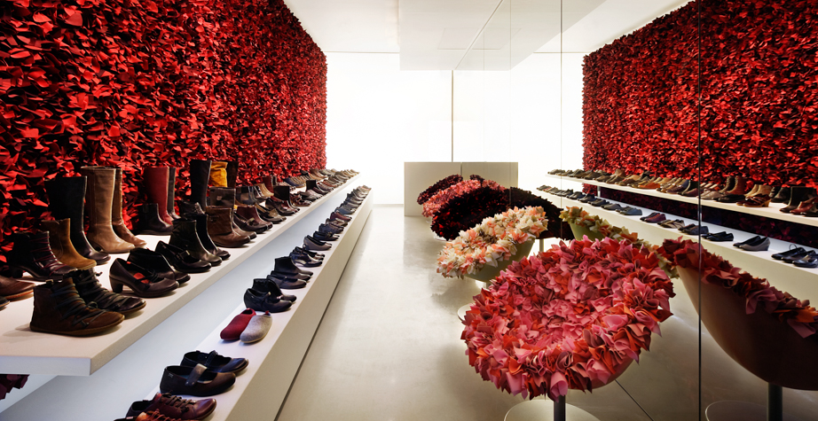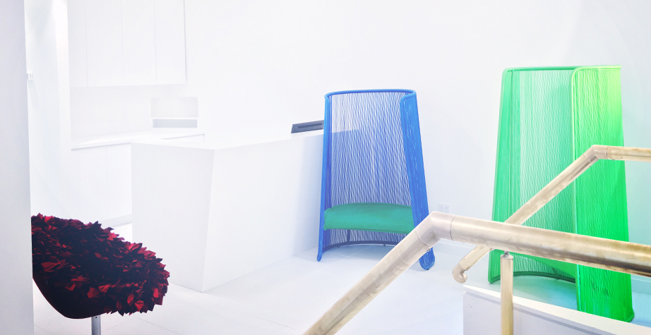 如纤细的镀铬金属茎上,绽放出一束花瓣,花瓣由一块块的织物组成,这些织物是用熟练的双手和无限的耐心一一折叠和缝制的。这是对精神美的一种赞颂,这种美存在于一个简单的重复动作中,揭示了视觉和真实形象之间的界限。花瓣的外皮包裹着鸡蛋形状的贝壳,直到所有的内部都被覆盖。梦幻的寓言,在工业设计的对象中颂扬的复杂的诗意转换。这把椅子让坐在上面的每个人都很开心,就像一束花一样。