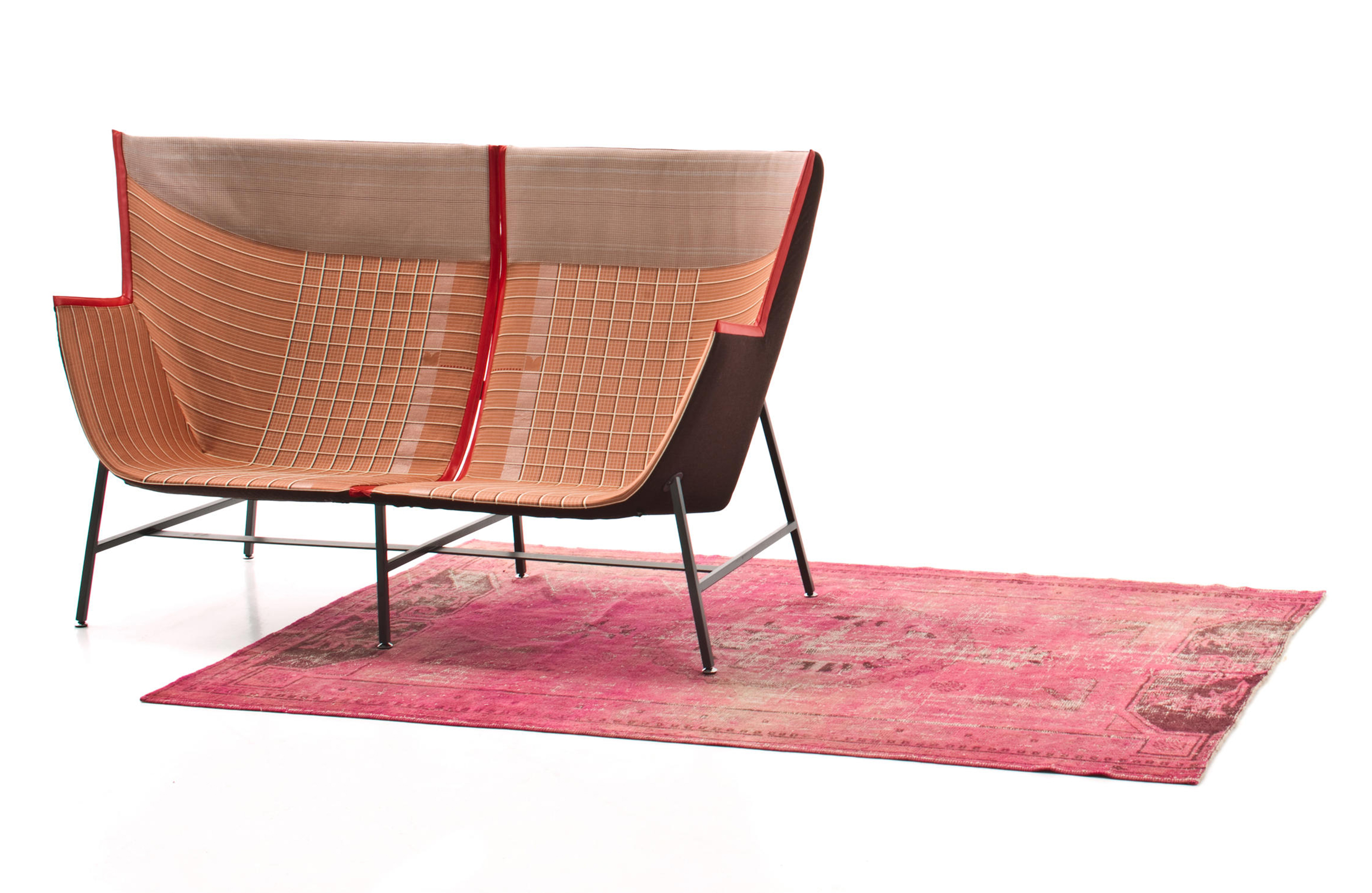 纸飞机起源于一种基于图形纸的织物设计:它的形状来自于纸张的折叠和造型,作为对形式和结构的探索,创造出角度、线条和多边形。它看似简单,却需要高超的裁剪技巧:面料的线条必须与椅子的几何结构完美结合,这意味着没有犯错的余地。