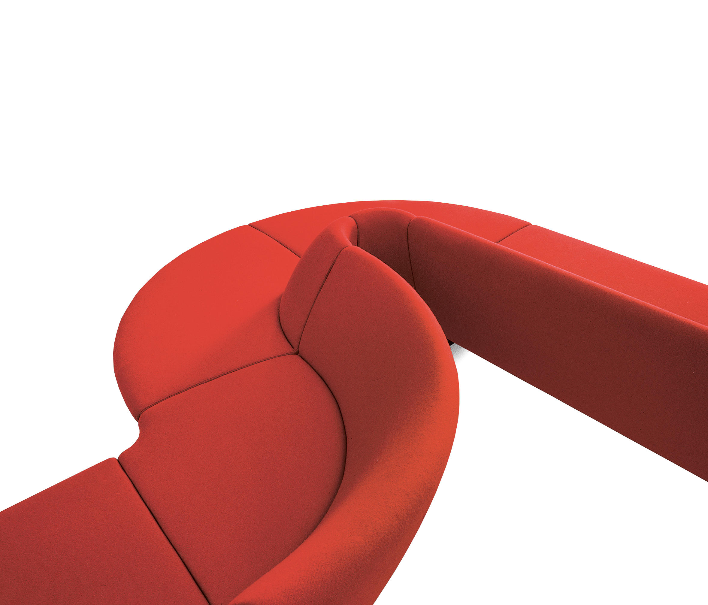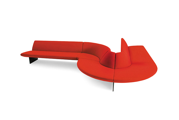 曲线优美,轻盈,极具雕塑感。汤姆迪克森的模块化系统对于等候区和大空间来说是很棒的选择。一个极简主义的系统,它可以适应各种各样的设置,在角落里、在中心区域或者在户外使用。它的名字是完美的,使用防火的聚氨酯火焰使它更适合于公共空间。钢脚的高度是可调的。