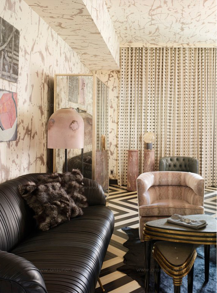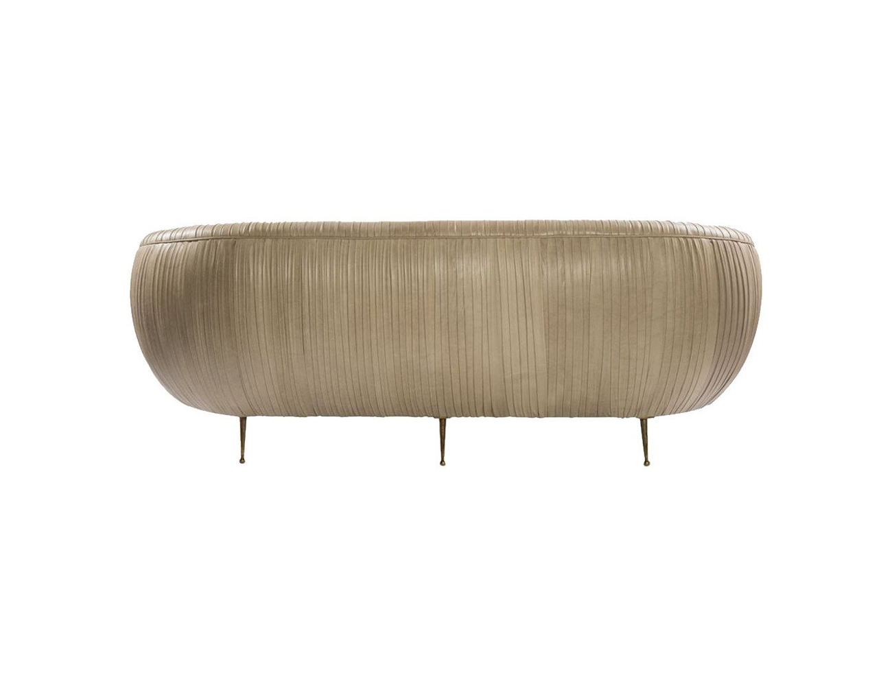 这款沙发的精致线条采用标志性褶皱皮革细节设计。 窑干硬木框架采用双榫和胶合,配有8向手工弹簧。 全面的蔬菜染色小羊皮手工缝制在框架上。 这款精致细腻的豪华沙发坐落在坚固的青铜铸造的锥形腿上。 完美适合厨房长椅,客厅或床边。