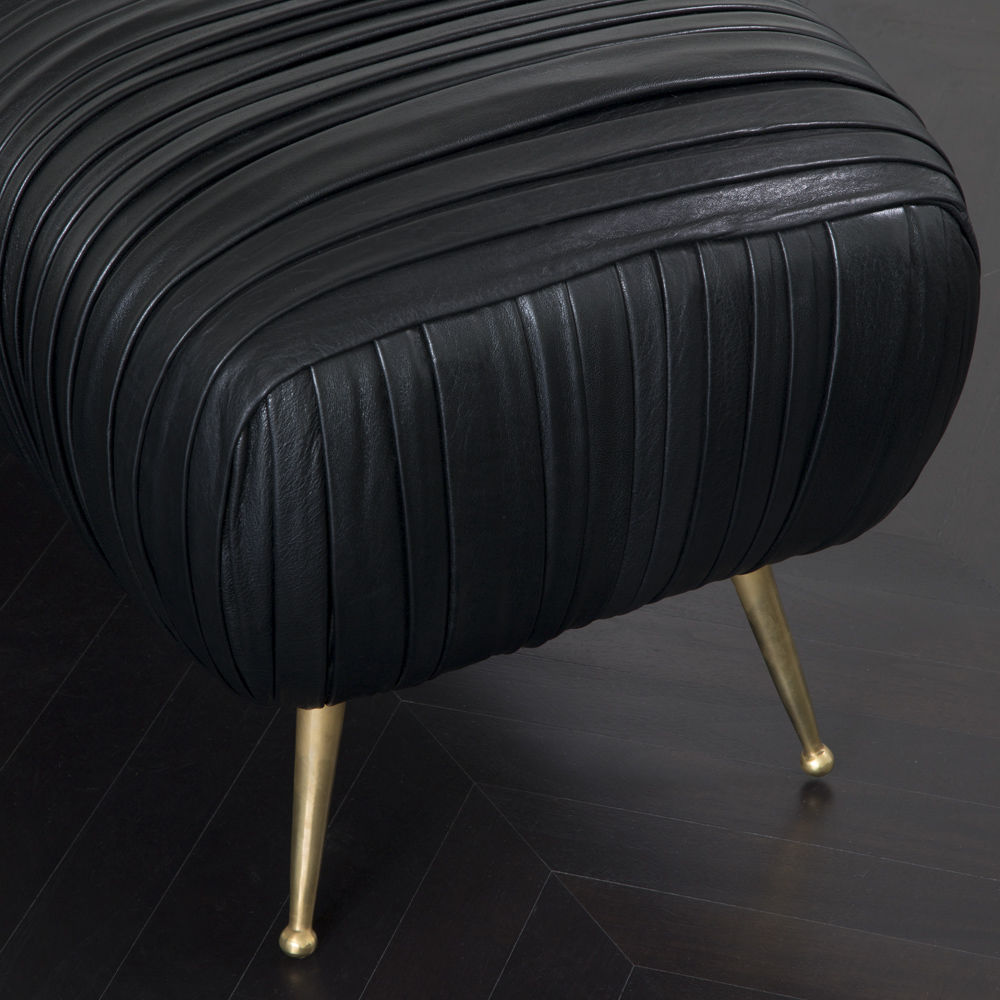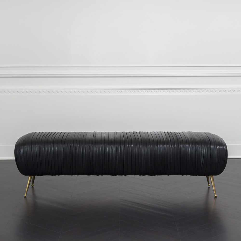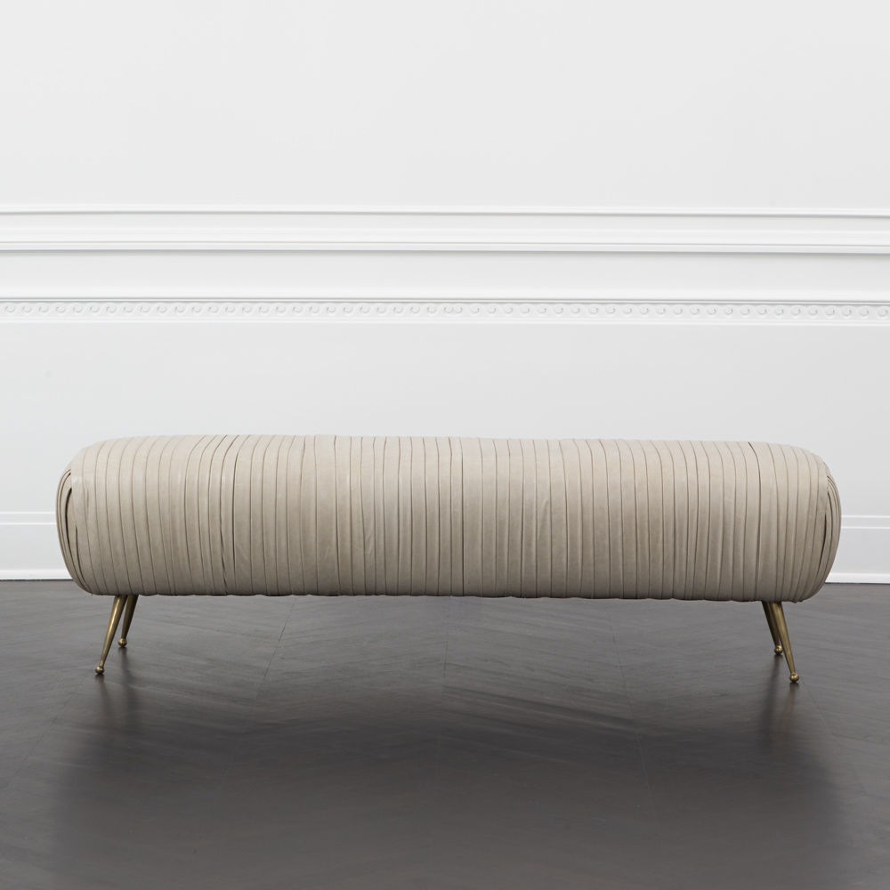 Souffle Bench的精致线条采用标志性皱折皮革细节设计。 全面的蔬菜染色小羊皮手工缝制在框架上。 这款精致细腻的豪华长凳坐落在坚固铸青铜的锥形腿上。 精致的比例非常适合入口通道,床尾或餐凳。