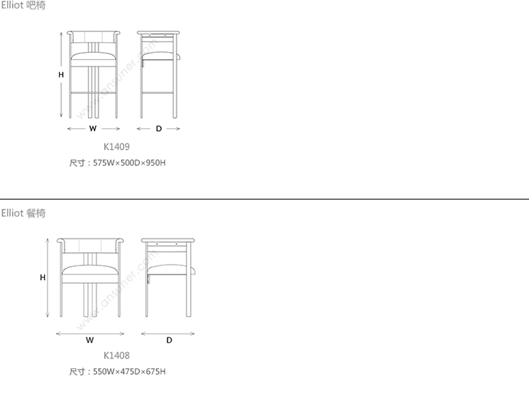 Elliot 吧椅 系列尺寸/示意图