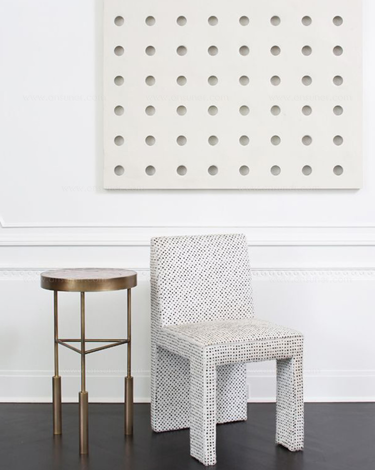 Sedona Side Table(塞多纳边几)有一系列镶嵌和抛光的半宝石,如玫瑰石英的菱锰矿,以及抛光黄铜框架的绿松石云母板岩。 每件作品都是独一无二。