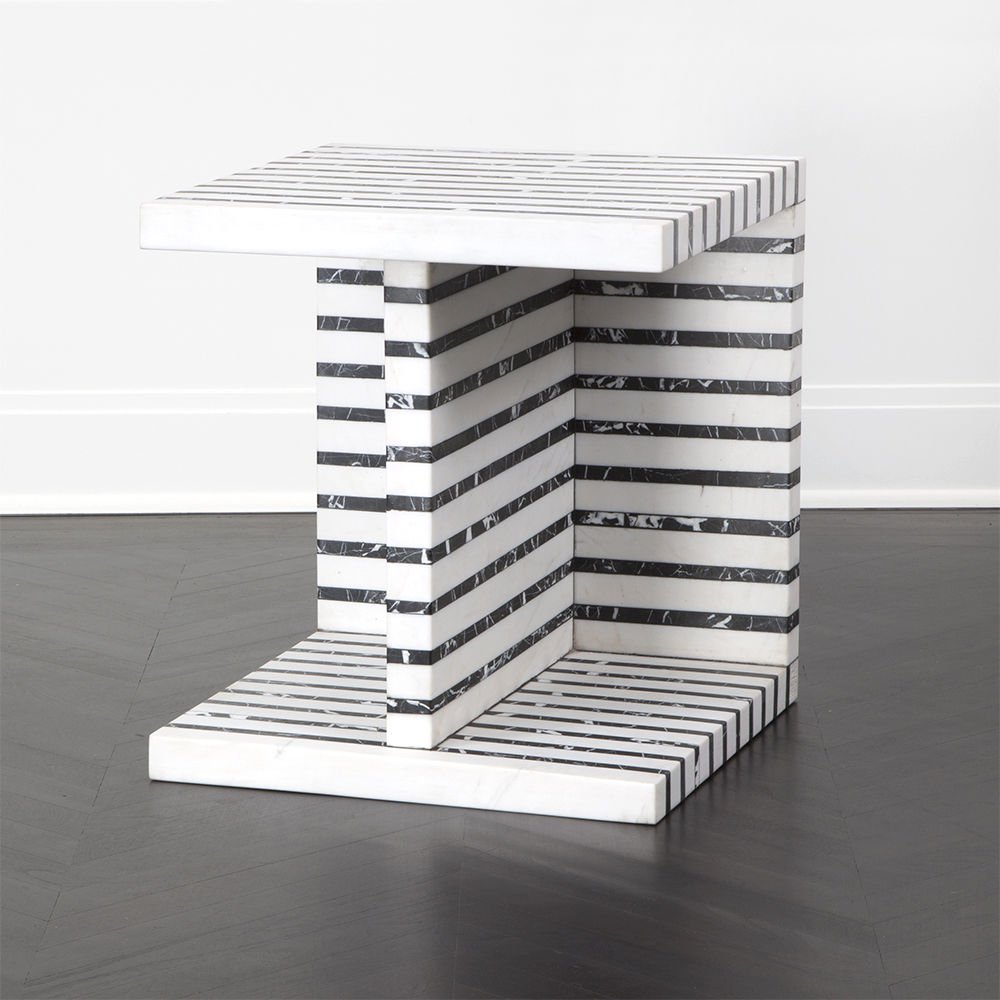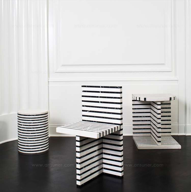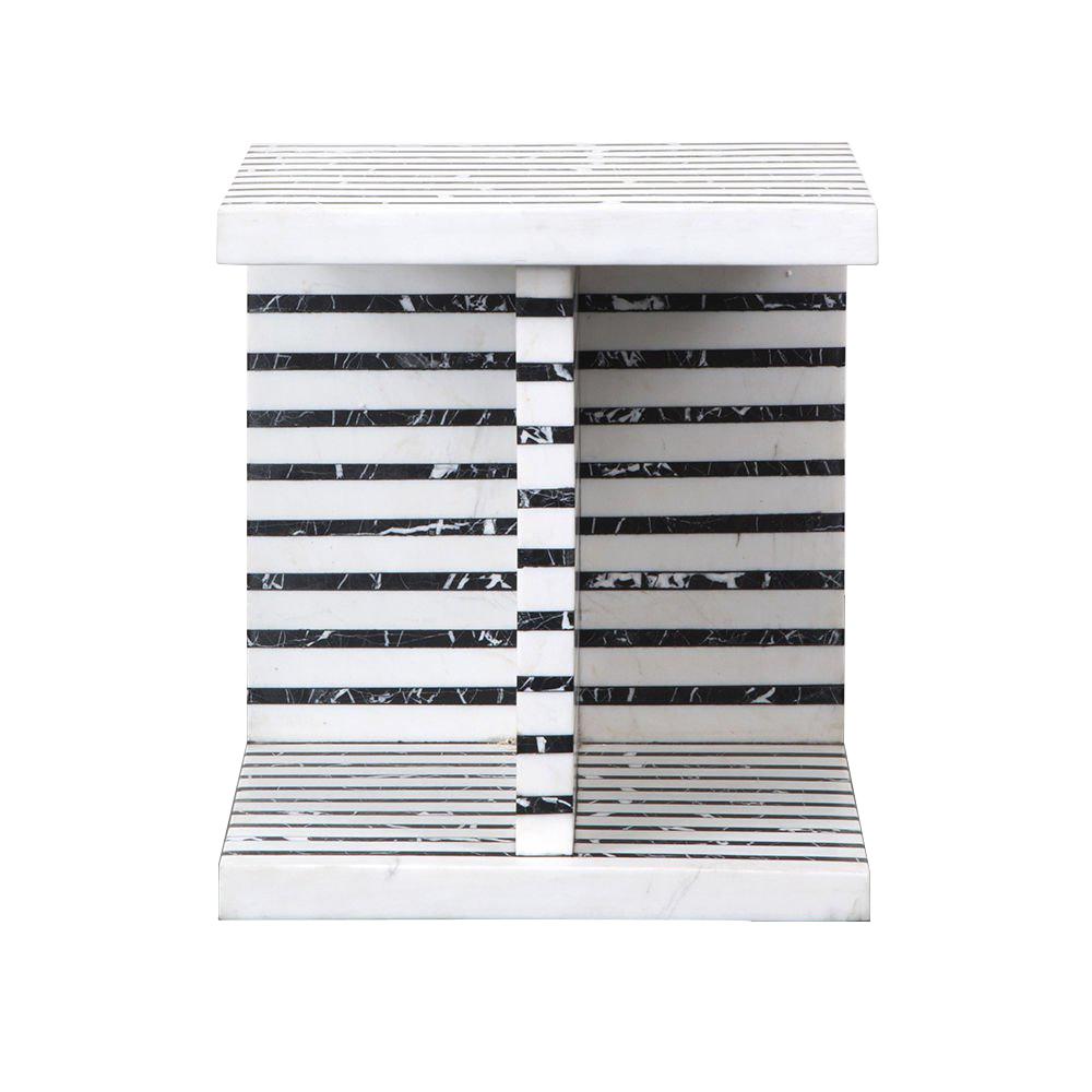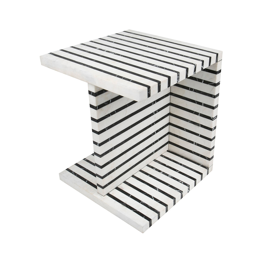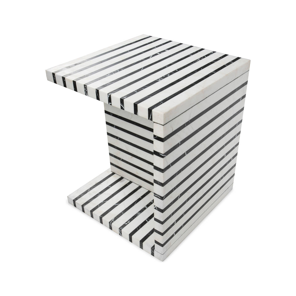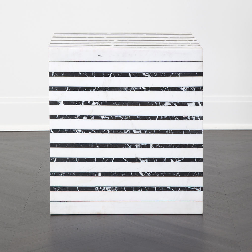 Lineage临时茶几是混合大理石和建筑构造形式的汇合,体现了艺术和功能的现代二元性。 这款雕塑茶几采用天然黑色玛奎那和白色大理石交替层层,经过磨光处理。
