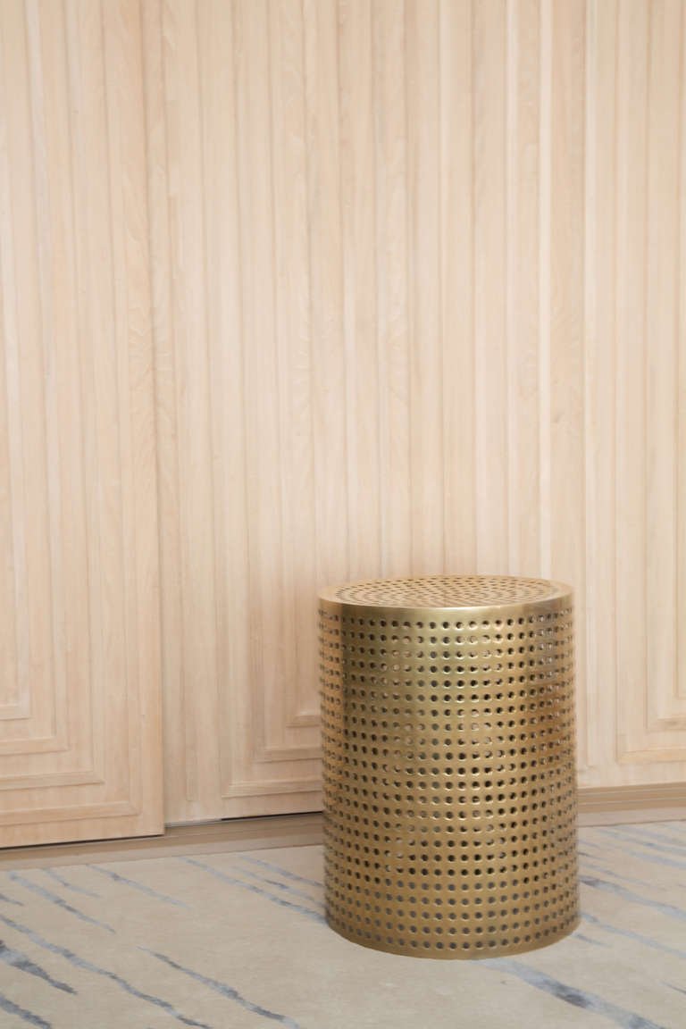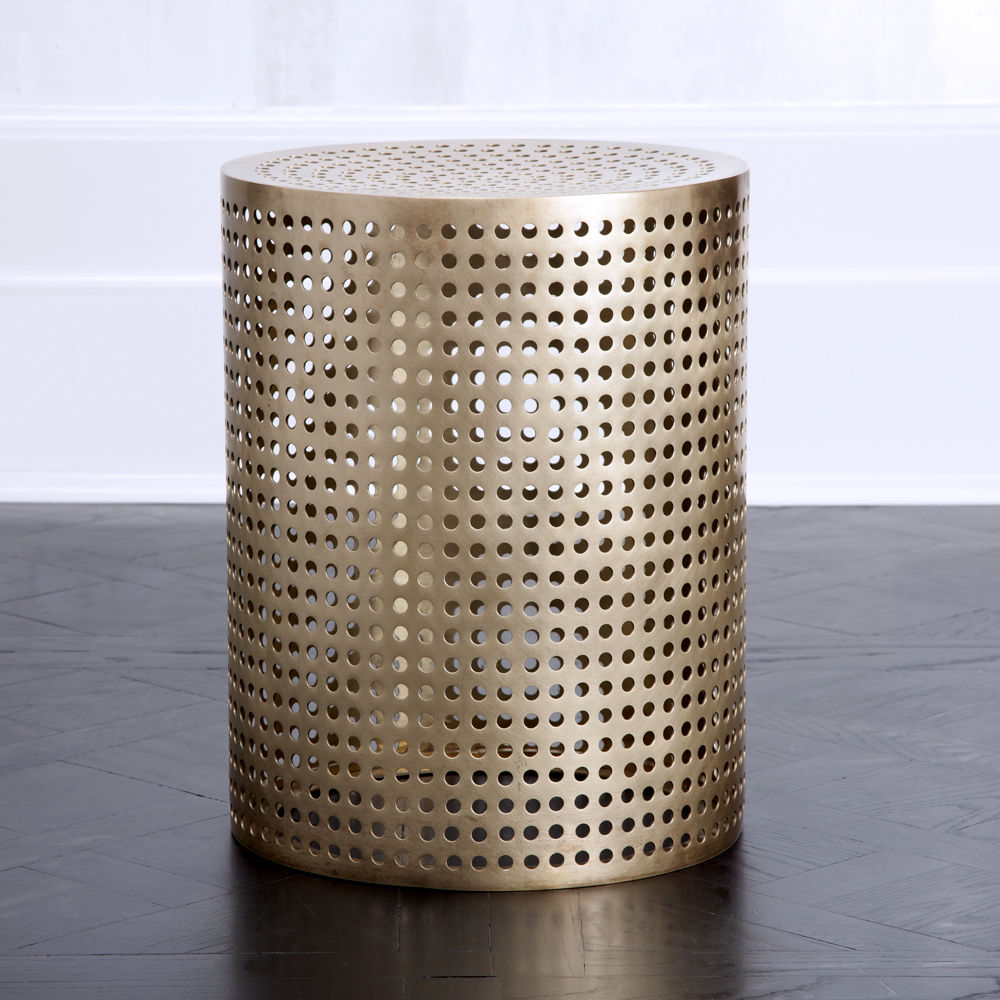 这款简约而经典的表款采用未经涂漆的抛光青铜制成。 穿孔细节为这款凳子或边几带来现代优雅。