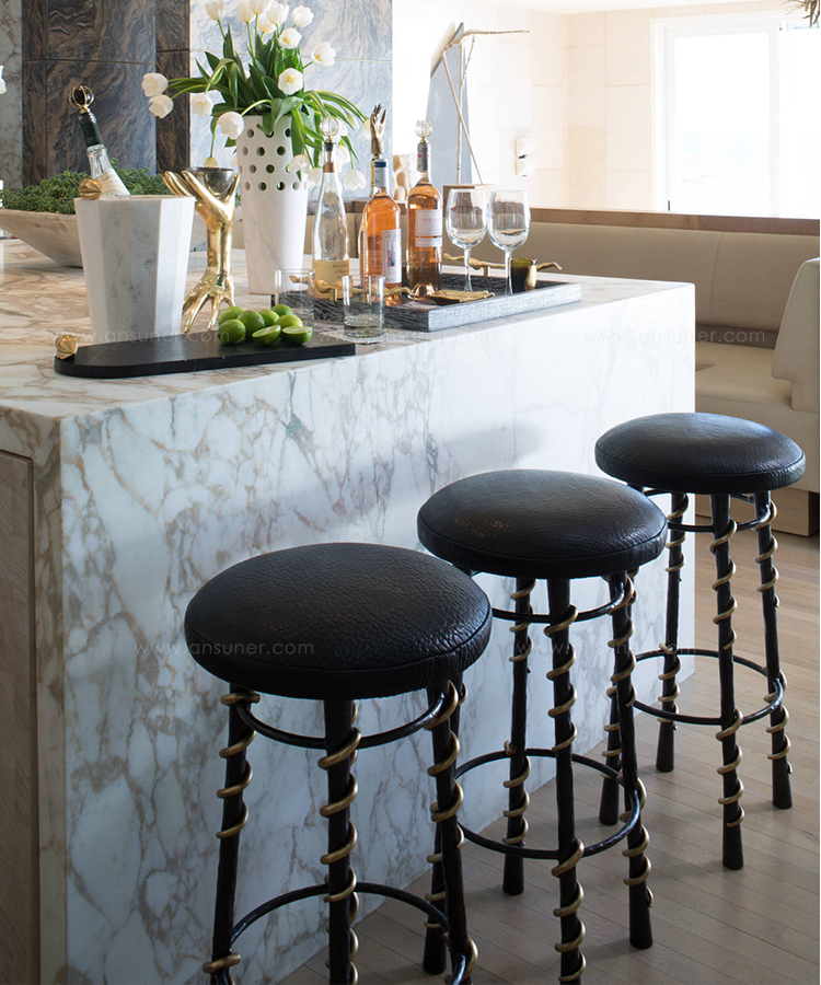 这款性感而简约的凳子采用手工锻造的黑色钢制成,并配有青铜蛇纹细节。 每个坚实的,切片雕刻的腿都是手工涂抹的深油擦青铜色。 座椅采用柔软的黑色纹理皮革装饰。 Serpent Stool采用黑色手工锻造钢材制成,可以采用各种纹理,奢华皮革装饰。