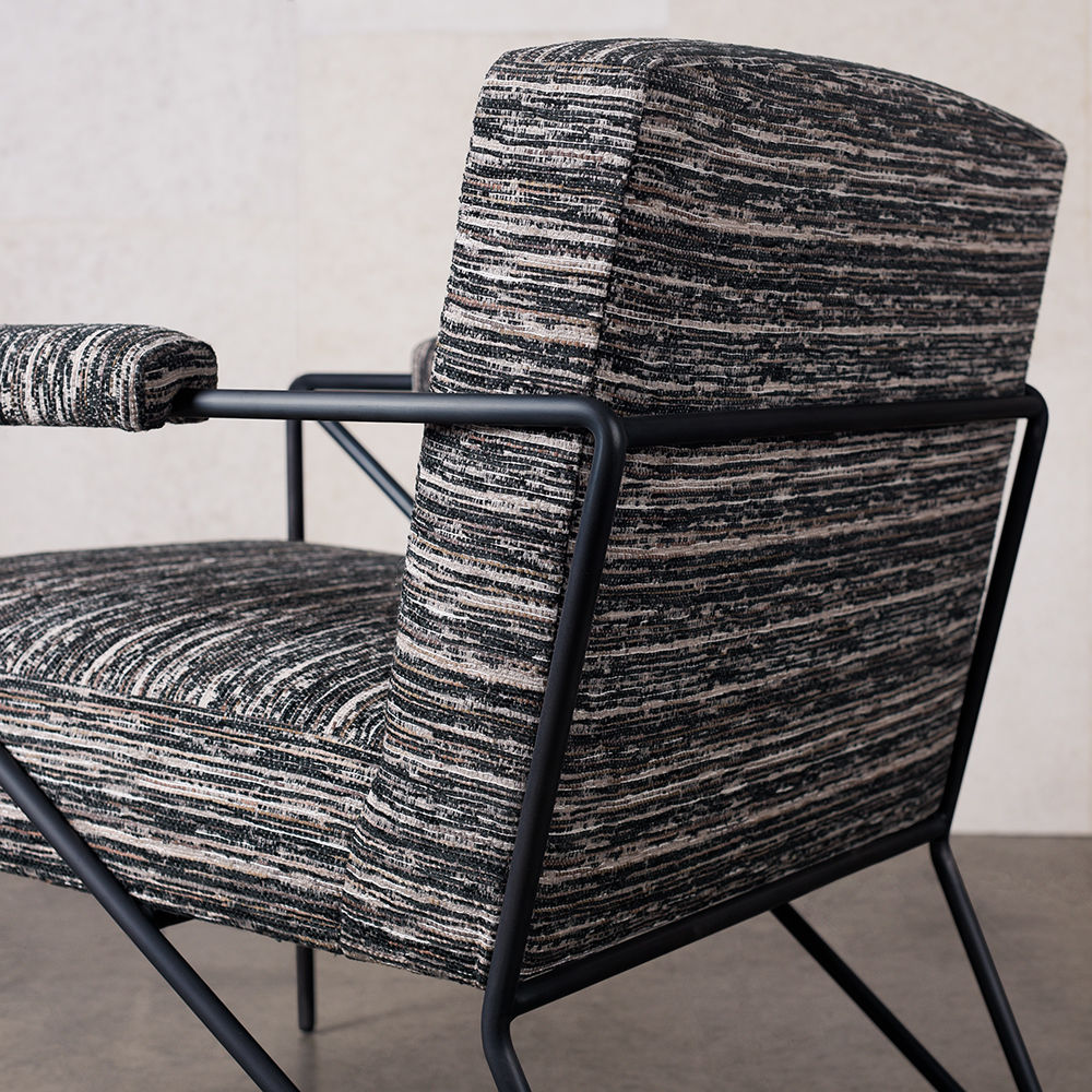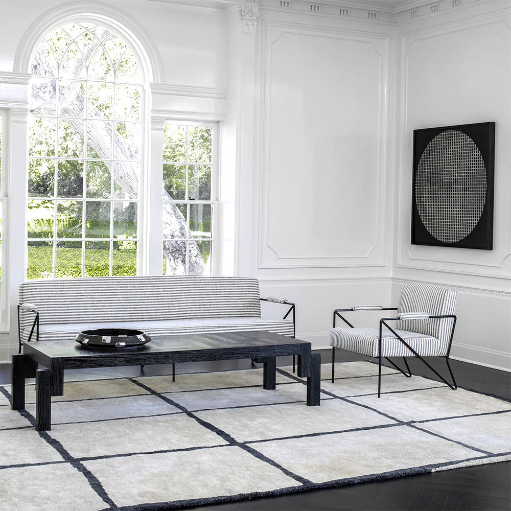 休闲而优雅的Emmett Settee在发夹后腿上设有一个亚光黑色不锈钢线性框架。 座椅和靠背提供轻松的直立座椅位置,使其成为完美的偶尔或此商品在我们的洛杉矶工作室手工制作。图书馆沙发选择。 腿具有多边形滑动以保护地板。