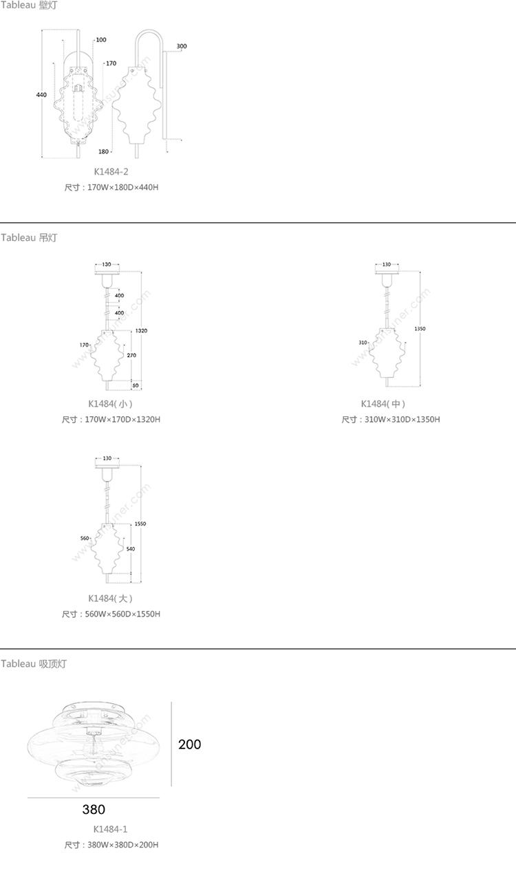 Tableau 壁灯 系列尺寸/示意图