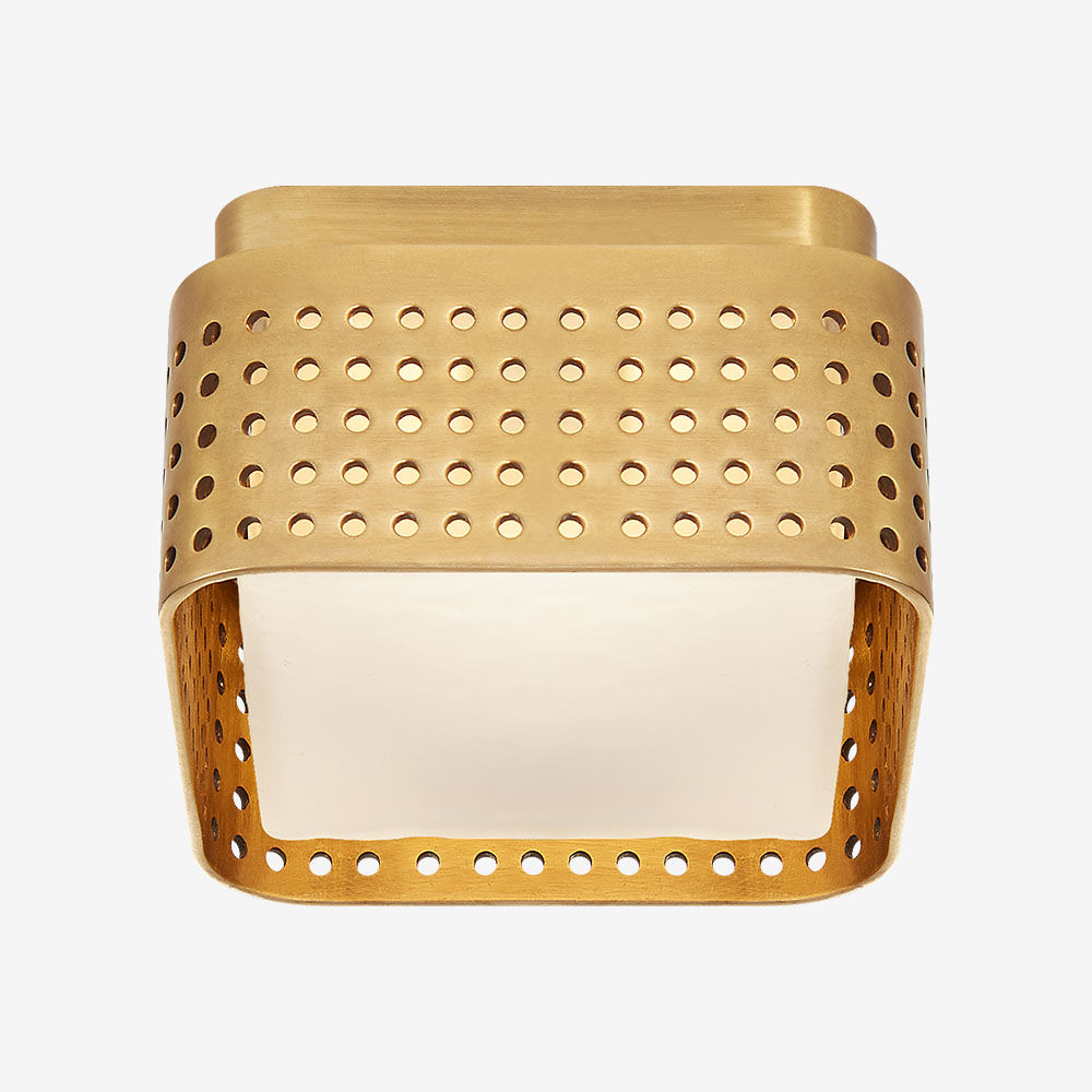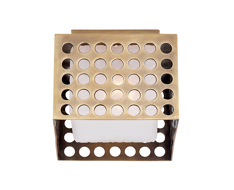 这个系列以雕塑形式的穿孔金属为特色,源于对建筑的热爱,以及光与形式的相互作用。 这些穿孔是一个标志性的设计元素,可以漫射和反射光线,为任何空间增添精致的质感和丰富的深度感。 提供古董抛光黄铜,青铜和抛光镍与云雾玻璃。