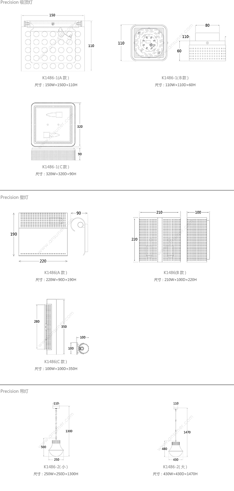 Precision 吸顶灯 系列尺寸/示意图