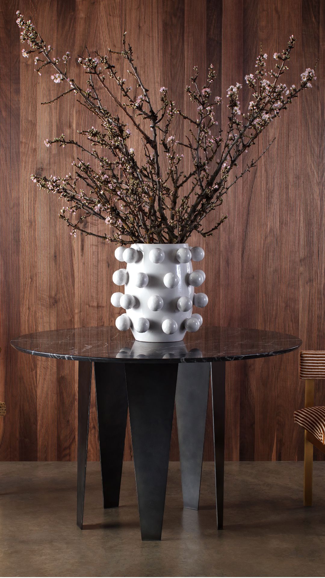 灵感来自凯利的爱的对比,这款充满活力的陶瓷花瓶与装饰球体一起被用作令人兴奋的细节,与流行系列中的其他作品相得益彰。 作为鲜花独立花瓶的完美之选,它是首选作品,使房子里的任何房间都活跃起来。
