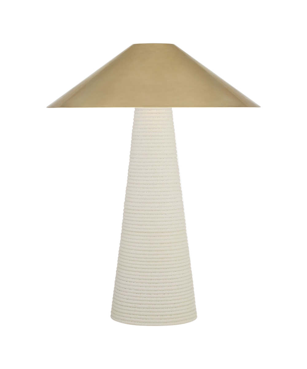 Miramar重点灯以其截断的几何形状和整体的凹槽底座传达了真正的建筑风格。 这款小巧的灯具采用多孔白色罗纹陶瓷或水晶青铜玻璃,并配有古董黄铜灯罩。