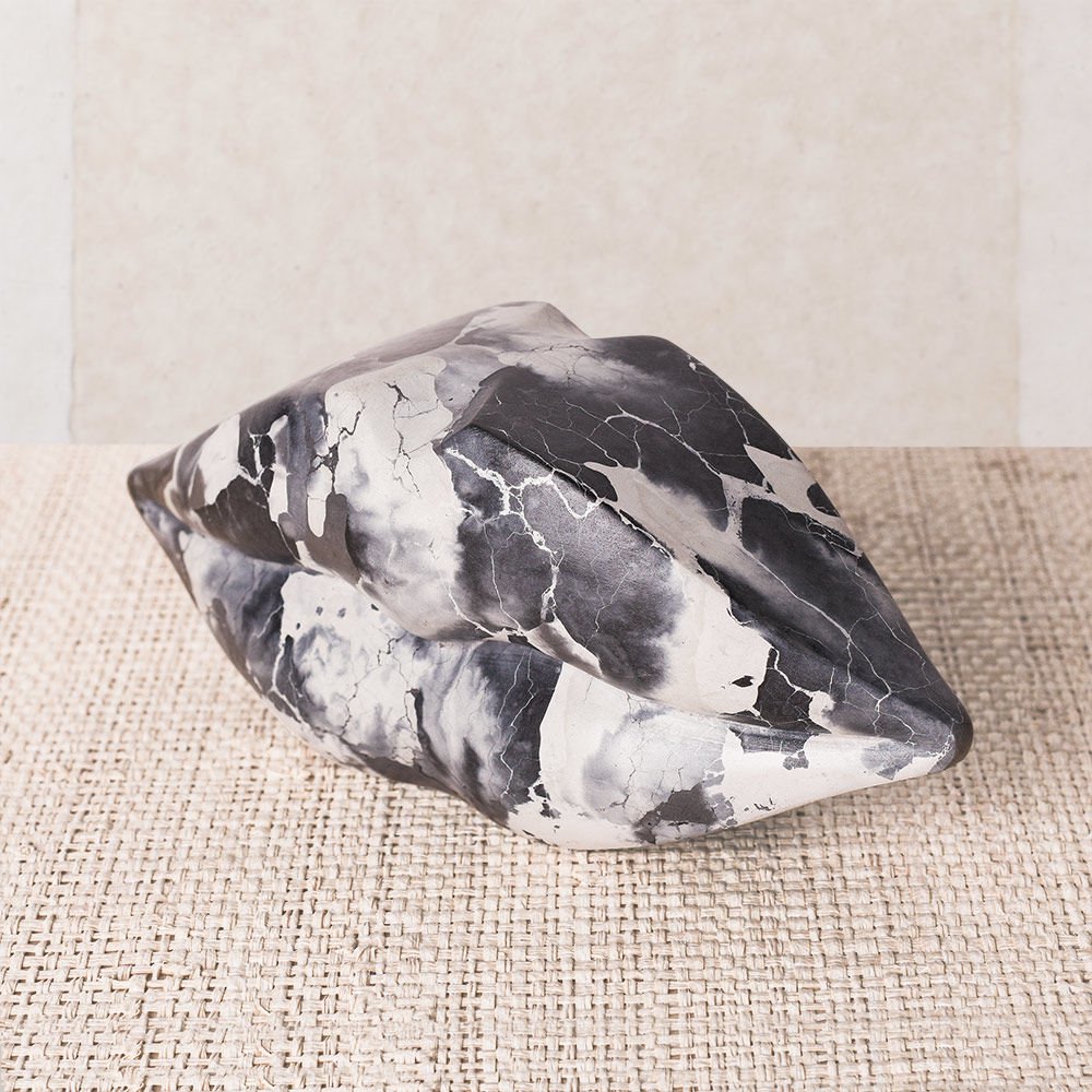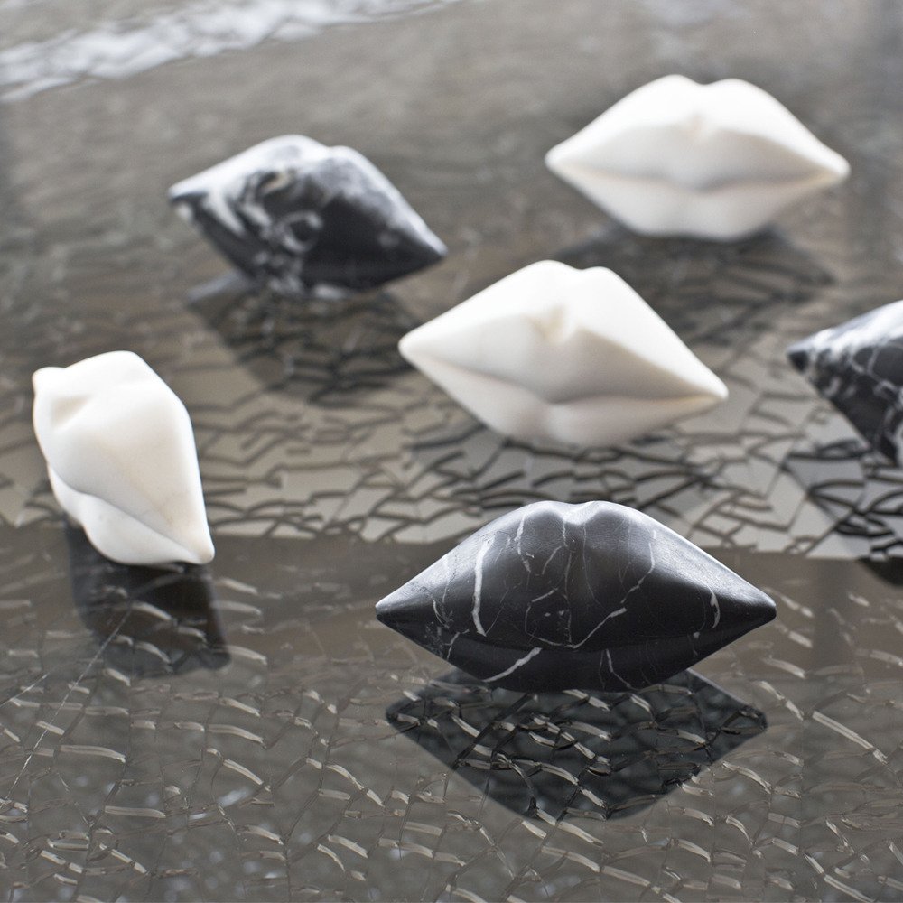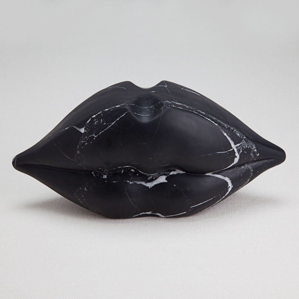 经典之吻,黑色马奎纳和白卡拉卡塔磨砂大理石,灵感来自经典雕塑形式。 标志性的家居饰品为您的书柜或餐桌增添了撩人的气息。 由一块石头工匠手工雕刻而成,永恒而别致的大理石之吻为任何空间带来更高级的奢华感。