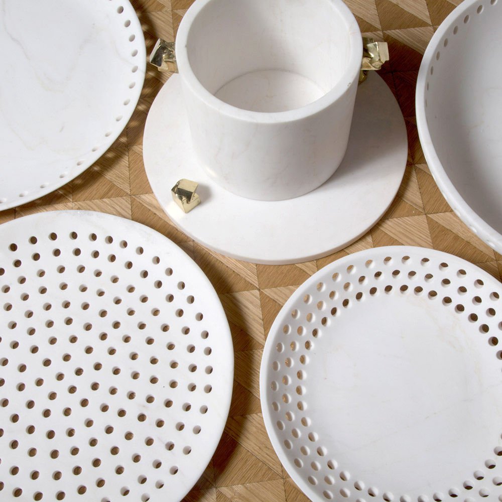 拥有令人惊叹的Acolyte冰桶,饰有天然青铜手柄,采用手工采摘的黄铁矿石制成。 Kelly对娱乐必需品的热爱激发了这款对比鲜明的黑色和白色冰桶,由黑色马奎纳和白色卡拉卡塔大理石手工雕刻而成。