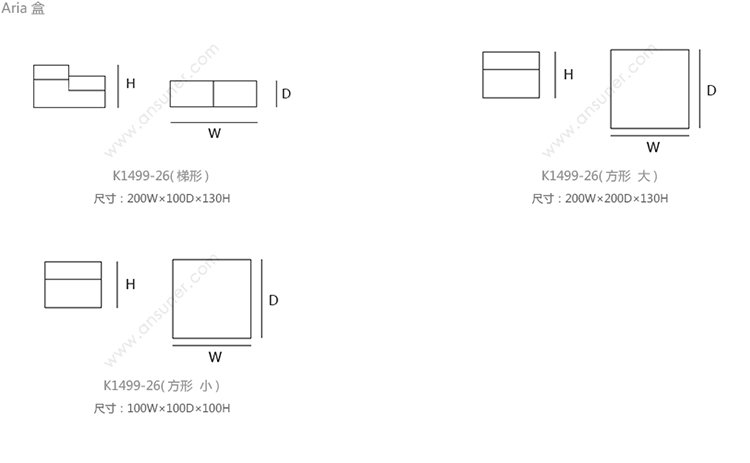 Aria 盒 系列尺寸/示意图