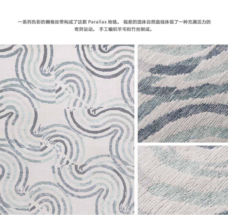 一系列色彩的侧卷丝带构成了这款Parallax地毯。 Parallax的自然曲线体现了一种充满活力的奇异运动。