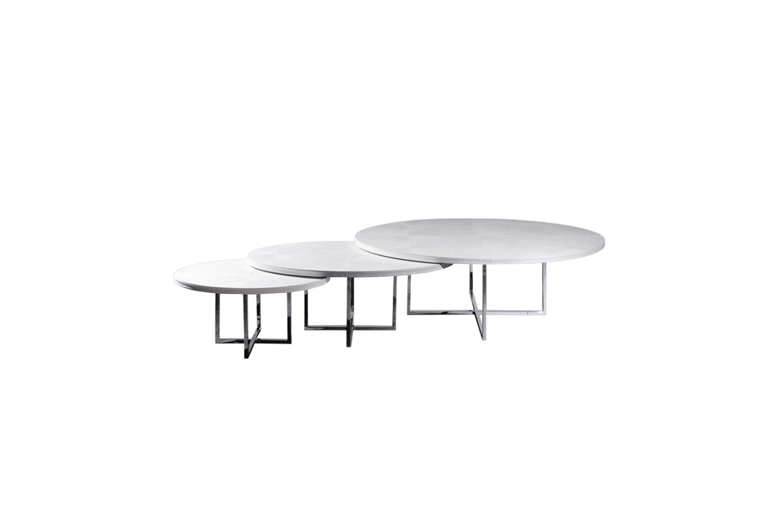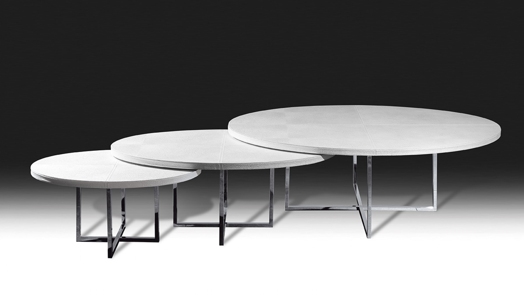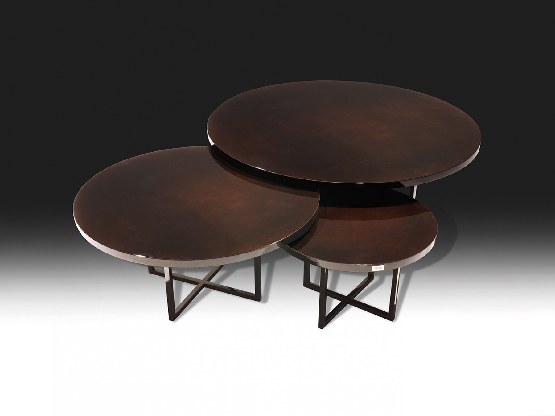 Olimpic, a contemporary coffee table set is available in 4 shapes; round, square, rectangle, oval. The Olimpic also offers 4 finishes; liquid bronze, chameleon bronze, onyx bronze and gris pulpis marble, each of them have different touches. All items can be paired perfectly.