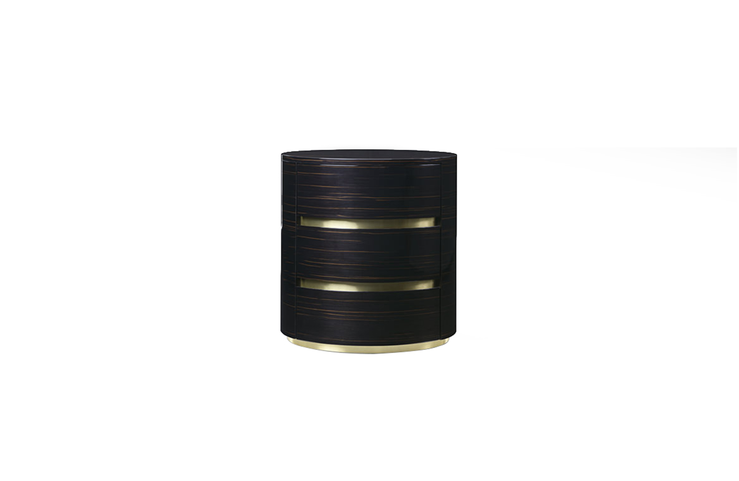 DRAWERS Frontal drawers in glossy lacquered wood, covered in leather or