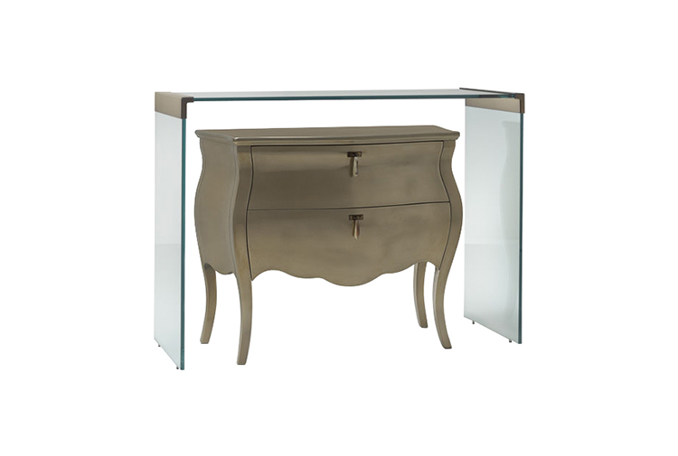 CONSOLE Glass with steel borders (with polished chrome, golden or gun-