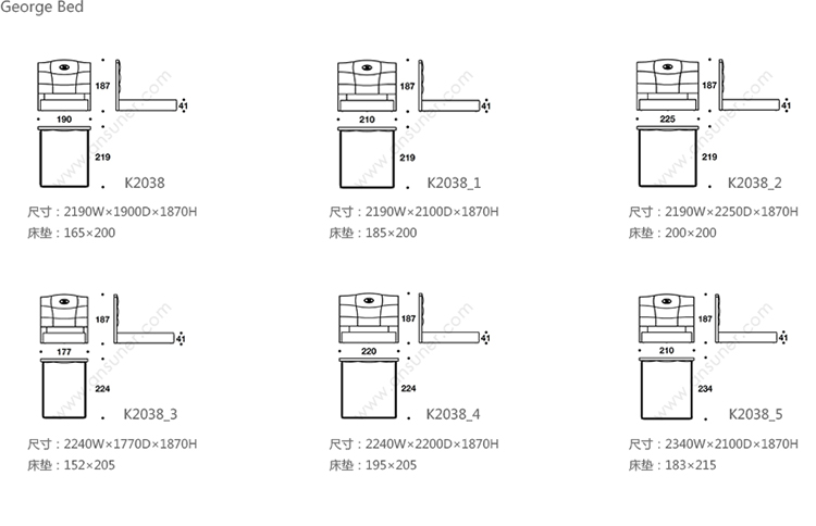 George Bed 系列尺寸/示意图