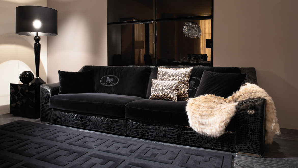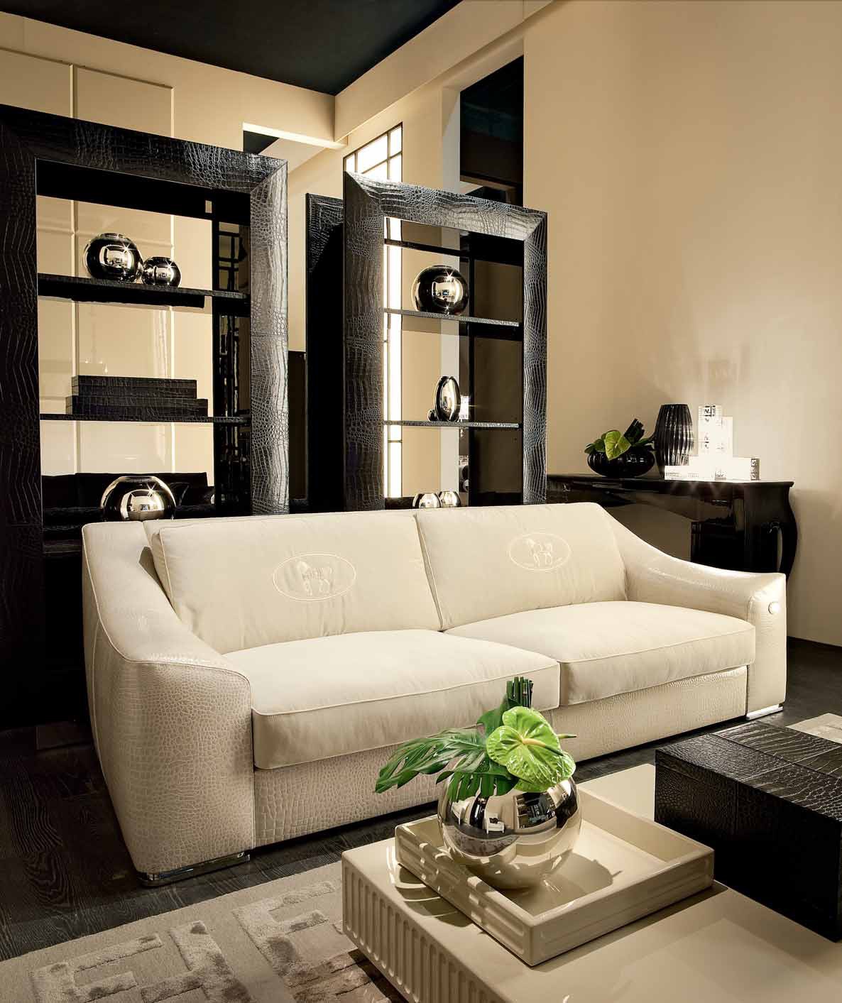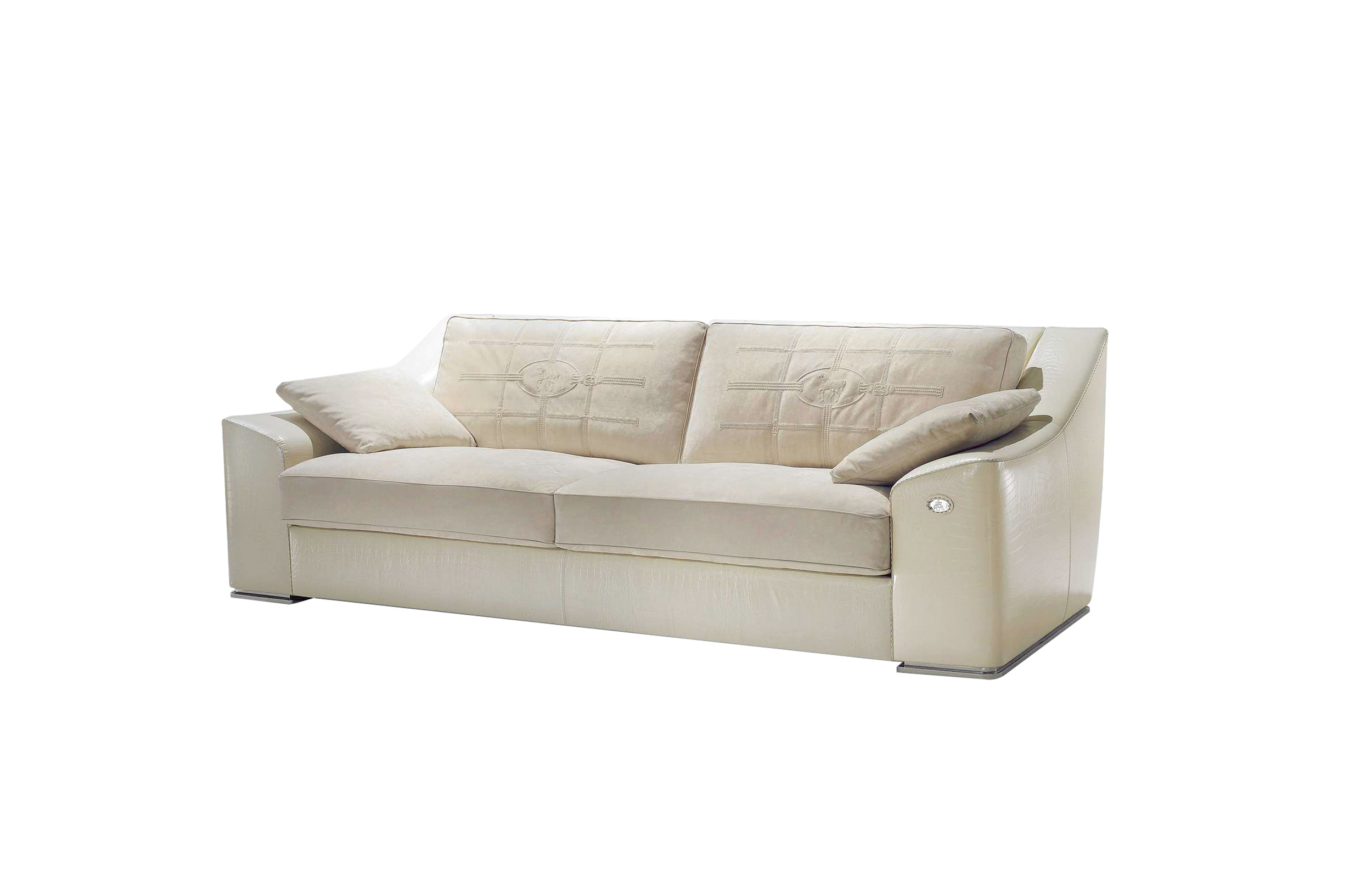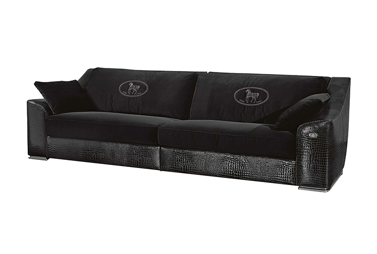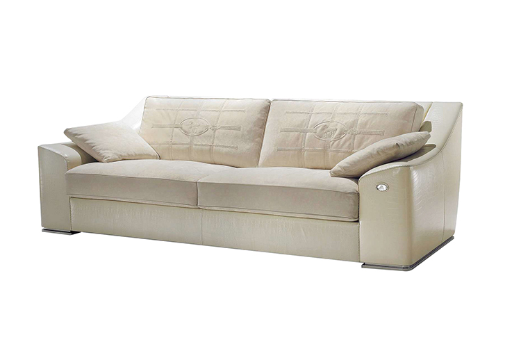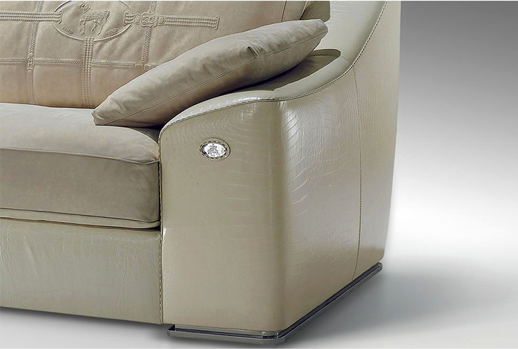 Frontal cover available also in fabric or printed leather (see price for component on the price list). Fabric or leather piping on armrests