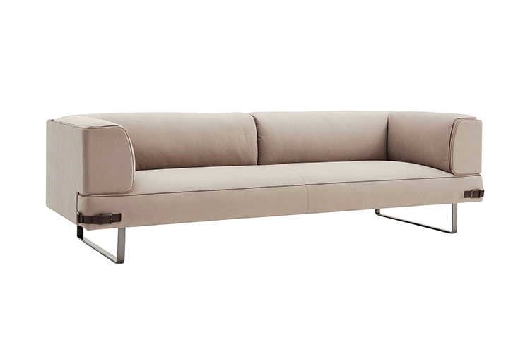 Soho Lite沙发是用钢的线性支撑元件重新塑造的。由于皮革装饰的中性色调,线性结构呈现出新的特点,而在技术面料版本中,精细材质的性能保证了柔软性和舒适性。buckles对芬迪的美学代码表示敬意,成为吸引人的细节和功能的连接器。