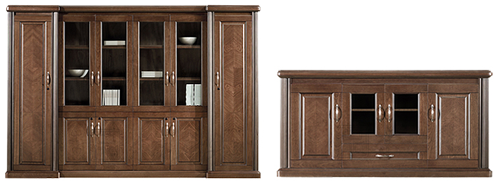 ※ 上图为配套矮文件柜和茶水柜展示,木析纹理和质感表现得更为淋漓尽致,色泽自然,配有不锈钢拉手,款式时尚而不失端庄,可以有多种颜色参考。(文件柜型号:CG-KM3Y06 规格:3040W×460D×2070H 茶水柜型号:CG-K-3Y158规格:1570W×400D×800H)