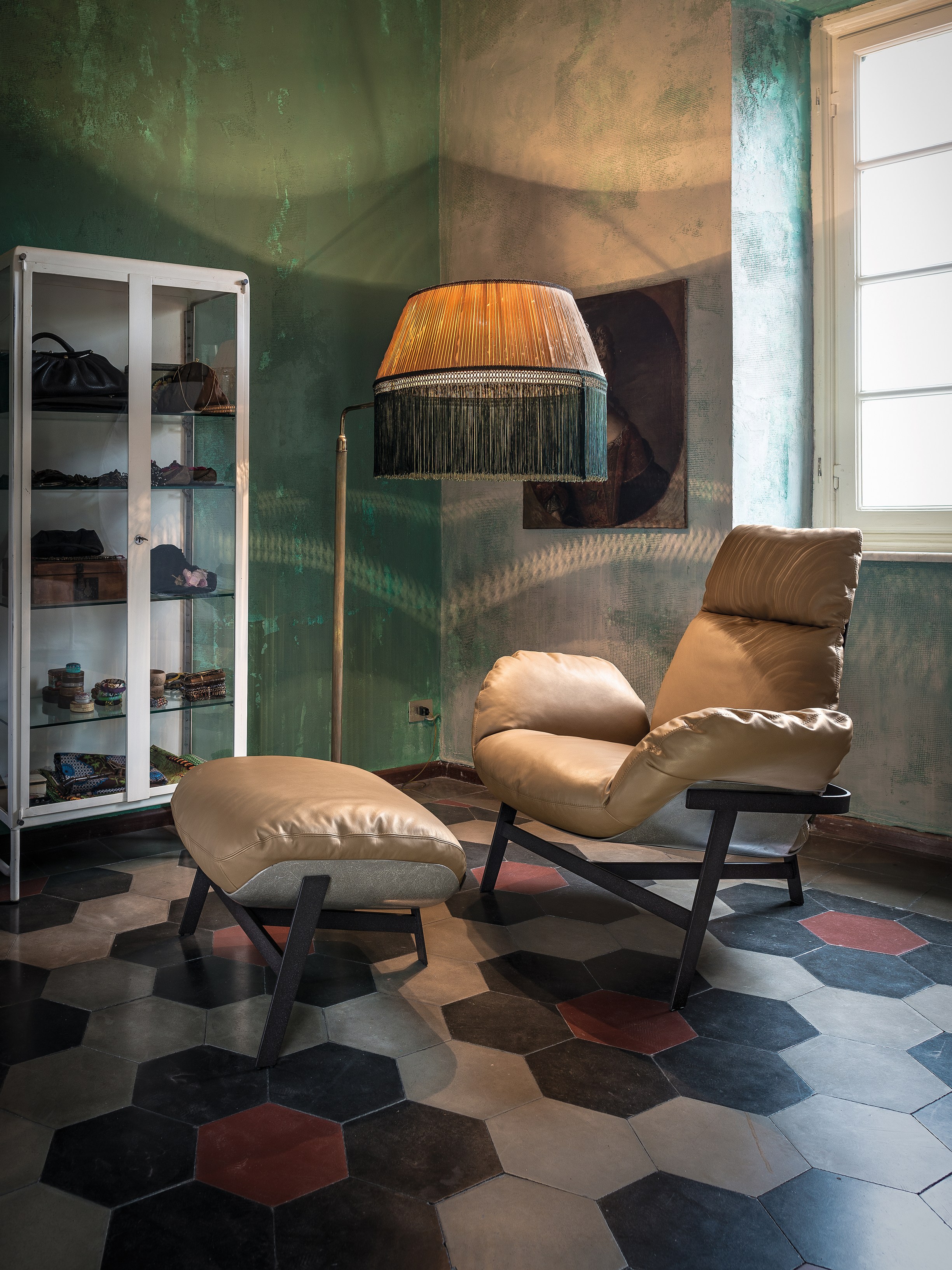 优雅而符合人体工程学的平衡。 动态稳定的温和。建筑配置突出了永恒的外观,并强调了个人使用材料的重要性。木星扶手椅有一个折叠的金属拱结构,由玻璃纤维外壳支撑着,填充的羽毛保证了高水平的舒适感。