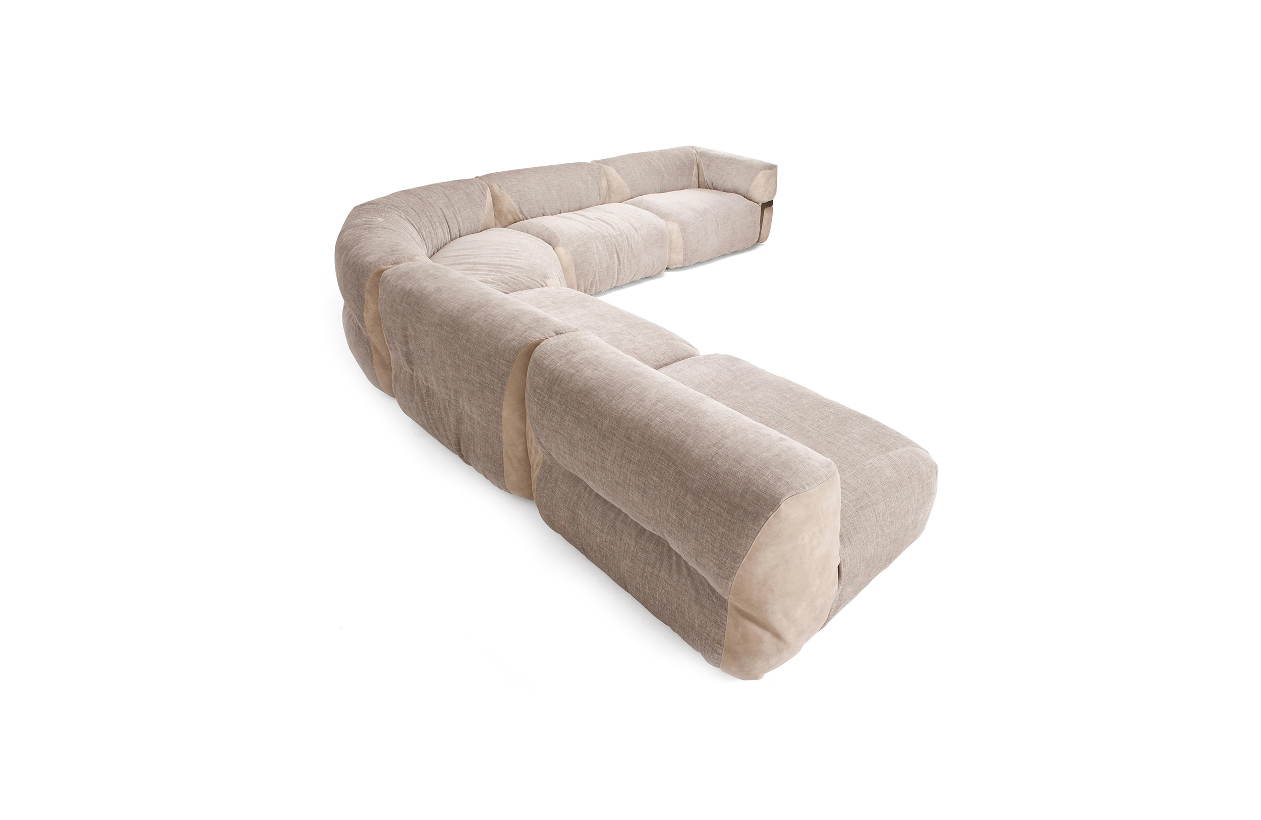 由Manzoni & Tapinassi设计的莲花沙发,可以让人对“组合沙发”的概念产生最大的影响,因为它可以根据自己的品味和所处的环境组合在一起。尽管它的背部很低,但它柔软而圆润的线条,以及它的衬垫,包裹着身体,给人极大的安慰。沙发的侧面,被云母棕色着色的镀锌的钛制金属框架阻断。角落里的补丁是一种装饰性的图案,因为它们可以根据自己的喜好个性化,选择面料或皮革。