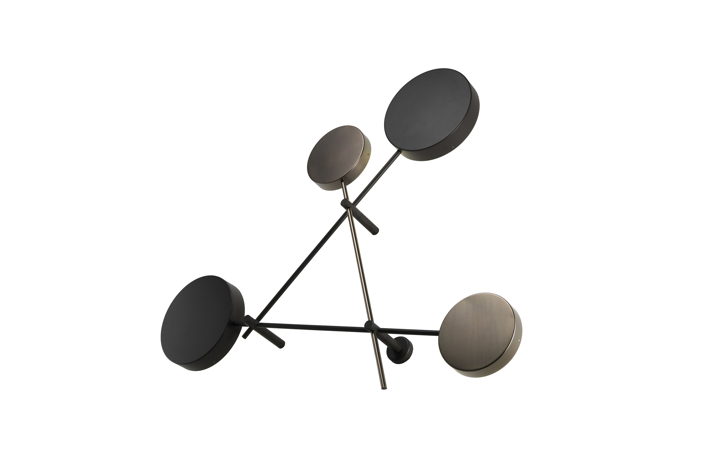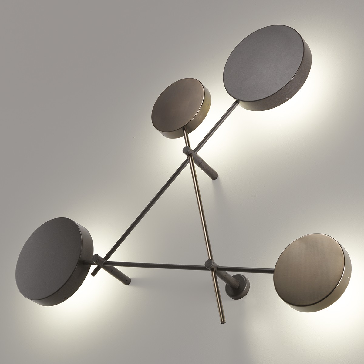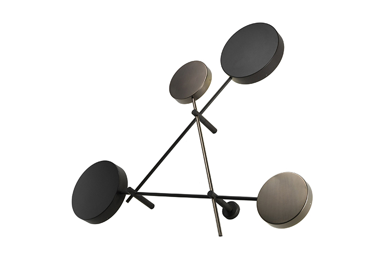 Iride是一个线条和圆圈的雕塑,几何形状的强烈的装饰效果,让你想起了康定斯基年代作品。圆盘形成了一个类似于日食的发光的光环。交错的结构是由三个圆盘和三个云母棕色金属棒和一个钛金属圆盘和棒制成。
