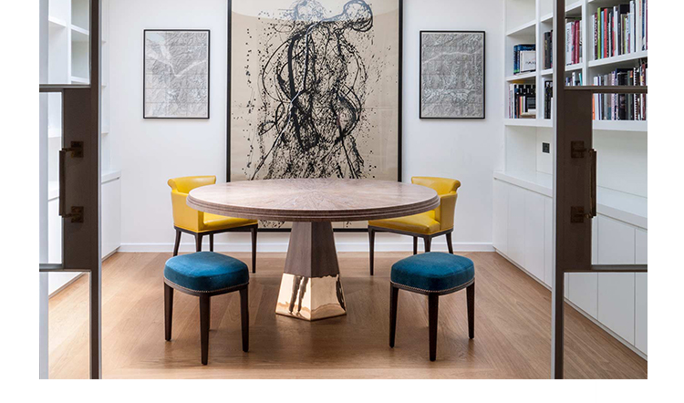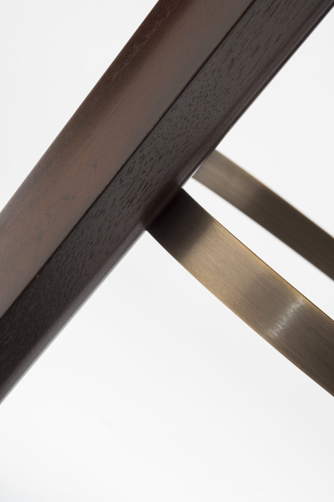 Babo是一个简单的、优雅的凳子都具有美国黑胡桃木、橡木雕刻手腿和一圈装饰钉在座位。