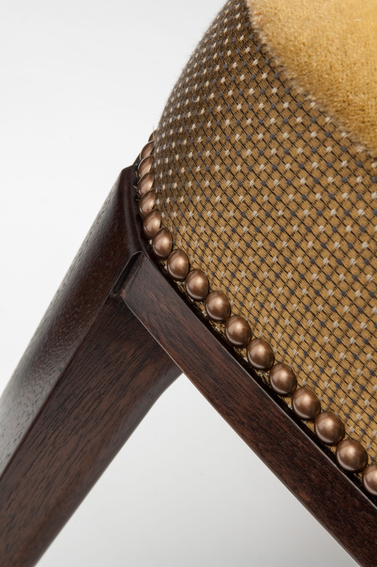 Babo是一款简约优雅的凳子,手工雕刻的美国黑胡桃木或橡木腿,以及围绕座椅的装饰钉。