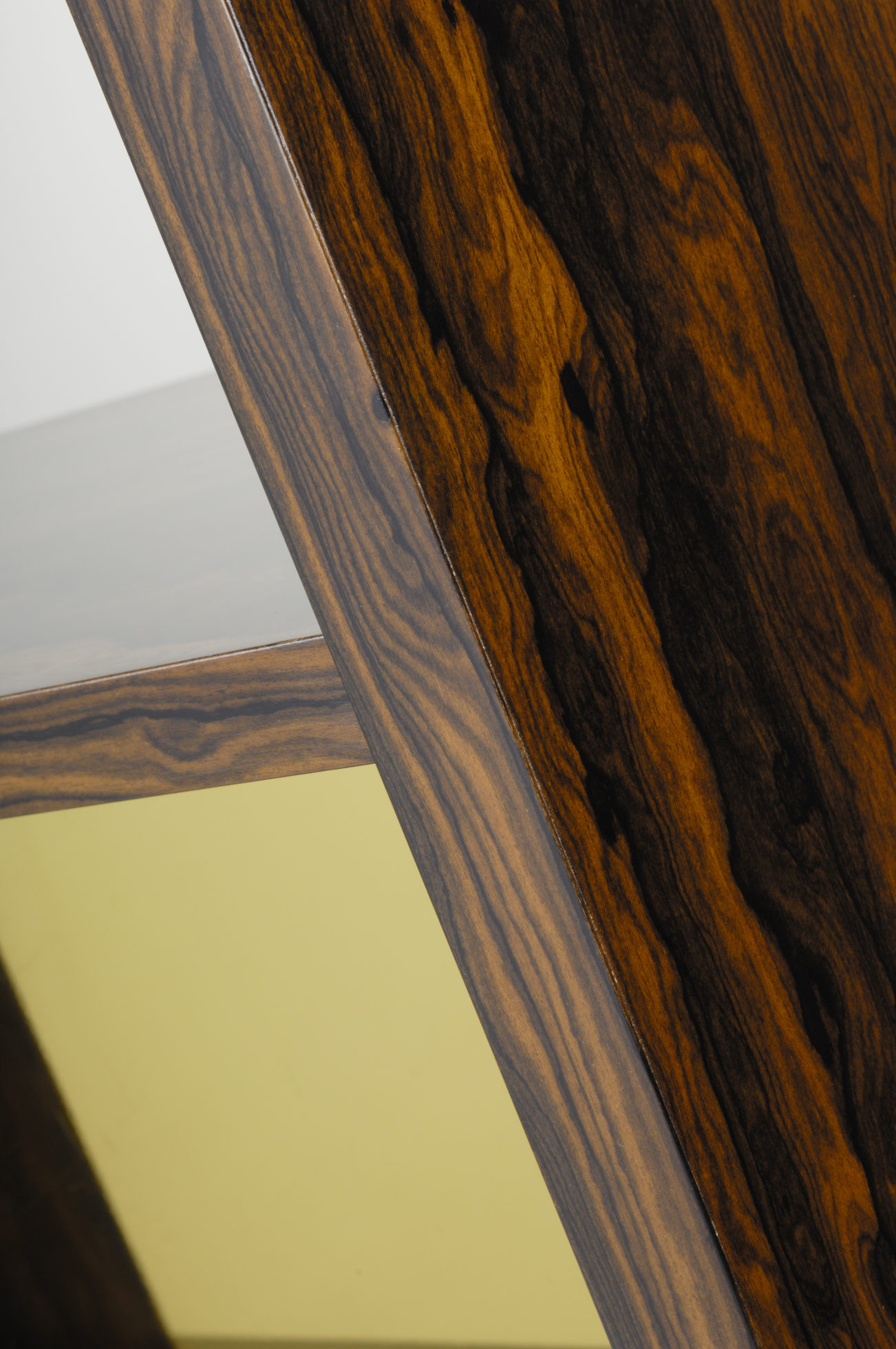 这里展示了戏剧性的Zirocote单板,抛光黄铜立柱和底座。 海伦小姐可以选择金属饰面,贴面,油漆颜色和各种尺寸。