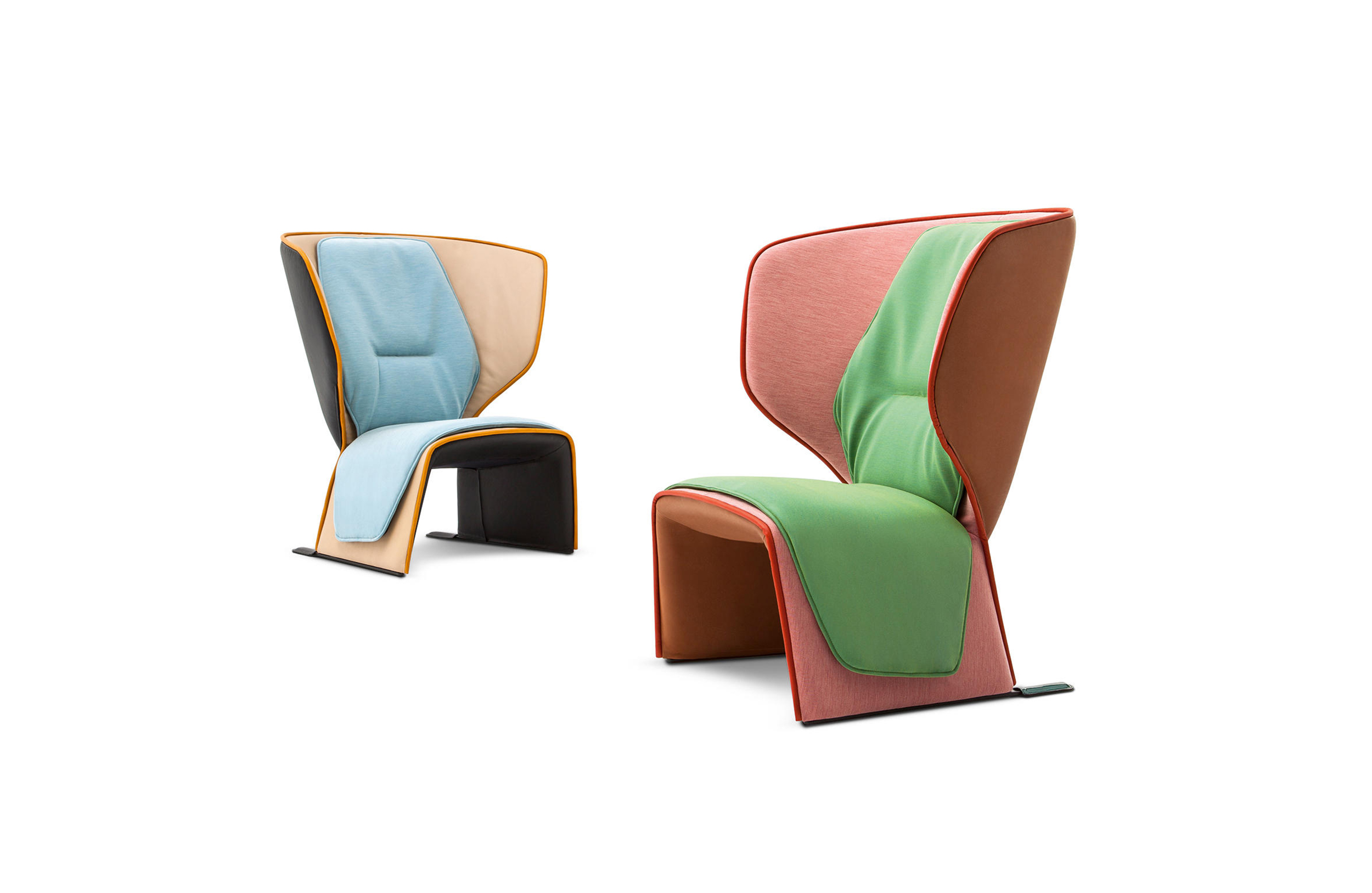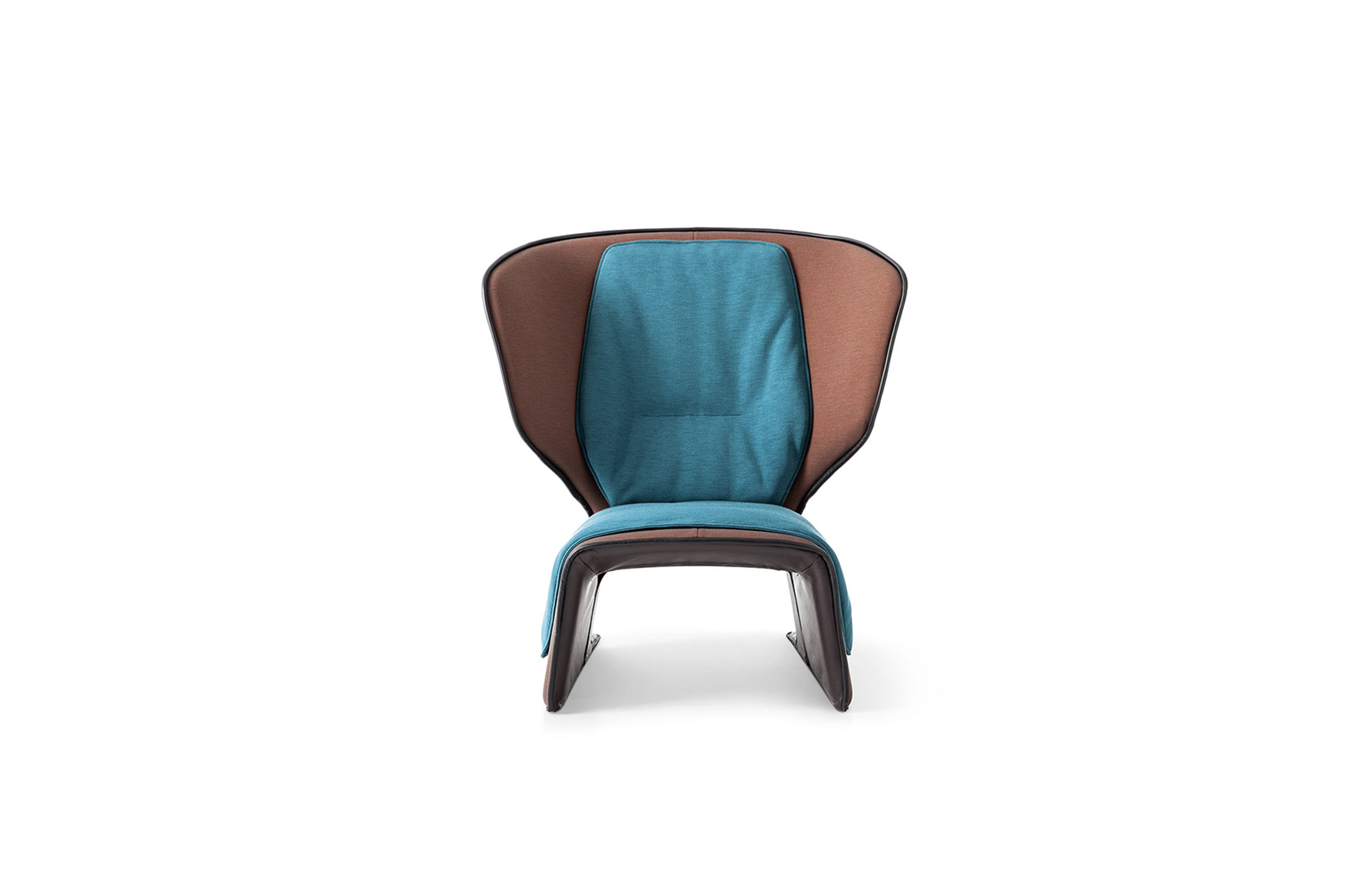 这款独特的扶手椅融合了传统和现代特色。其材料和颜色的组合适合多种用途:内部的软衬垫与外部的刚性元素和谐对话,染色皮革包边装饰突出了弯曲的线条。面料紧贴扶手椅的曲线,与外壳严谨、规整的结构形成对比,有五种不同颜色的标准组合。这款惬意的软包扶手椅的靠背在压力下可倾斜约12°,并可自动地返回到原来的位置,进一步增加了舒适感。结构:座椅和靠背采用钢管框架,并带有固定带。填充:密度可变无氟聚氨酯泡沫。底座:黑漆钢材,端部包覆黑色马鞍皮或闪光皮。软包饰面:布艺或皮革。