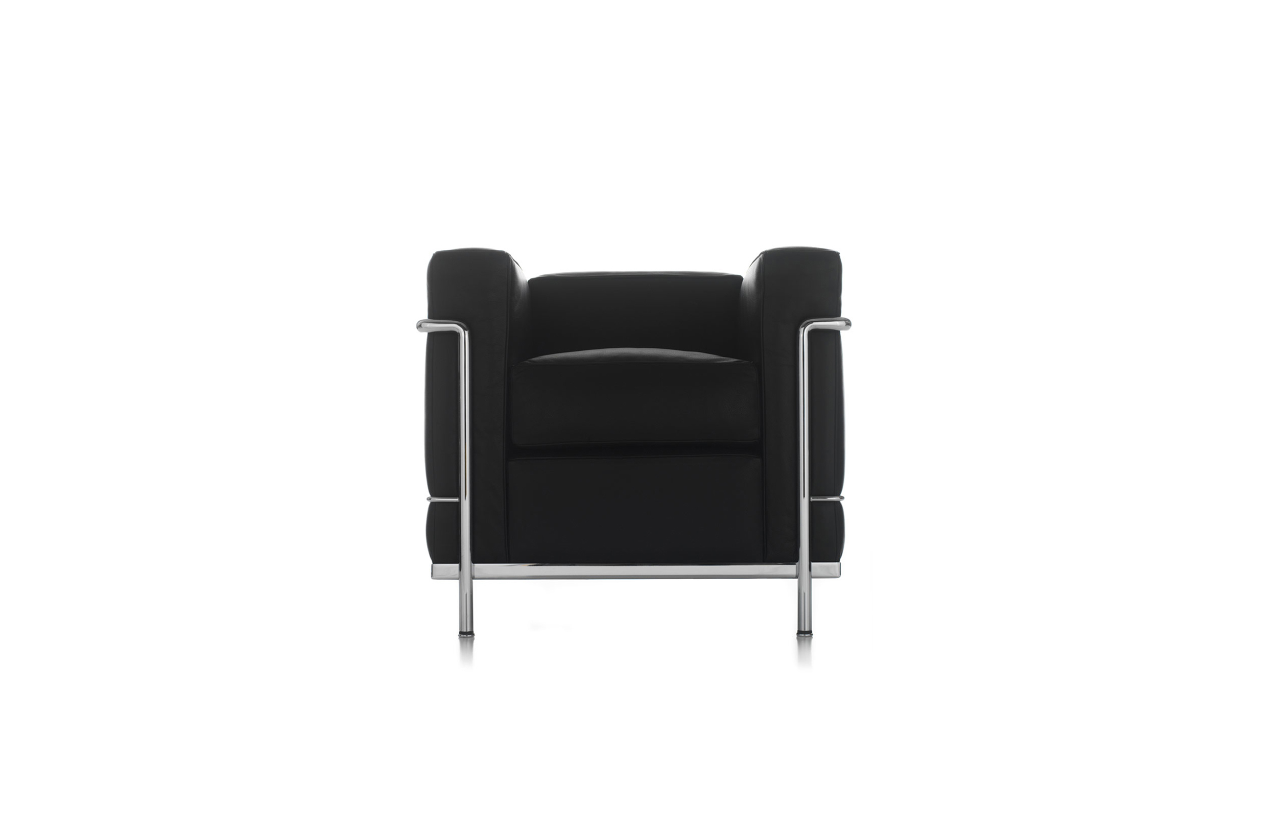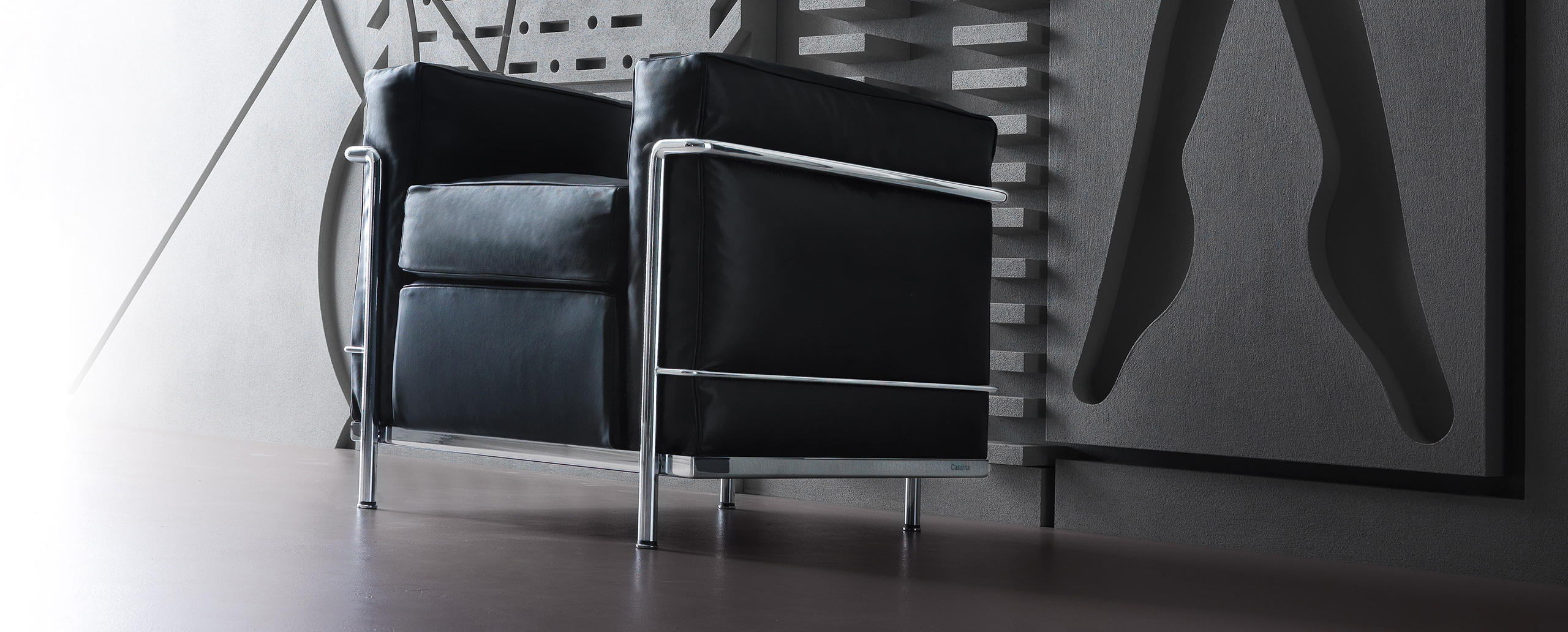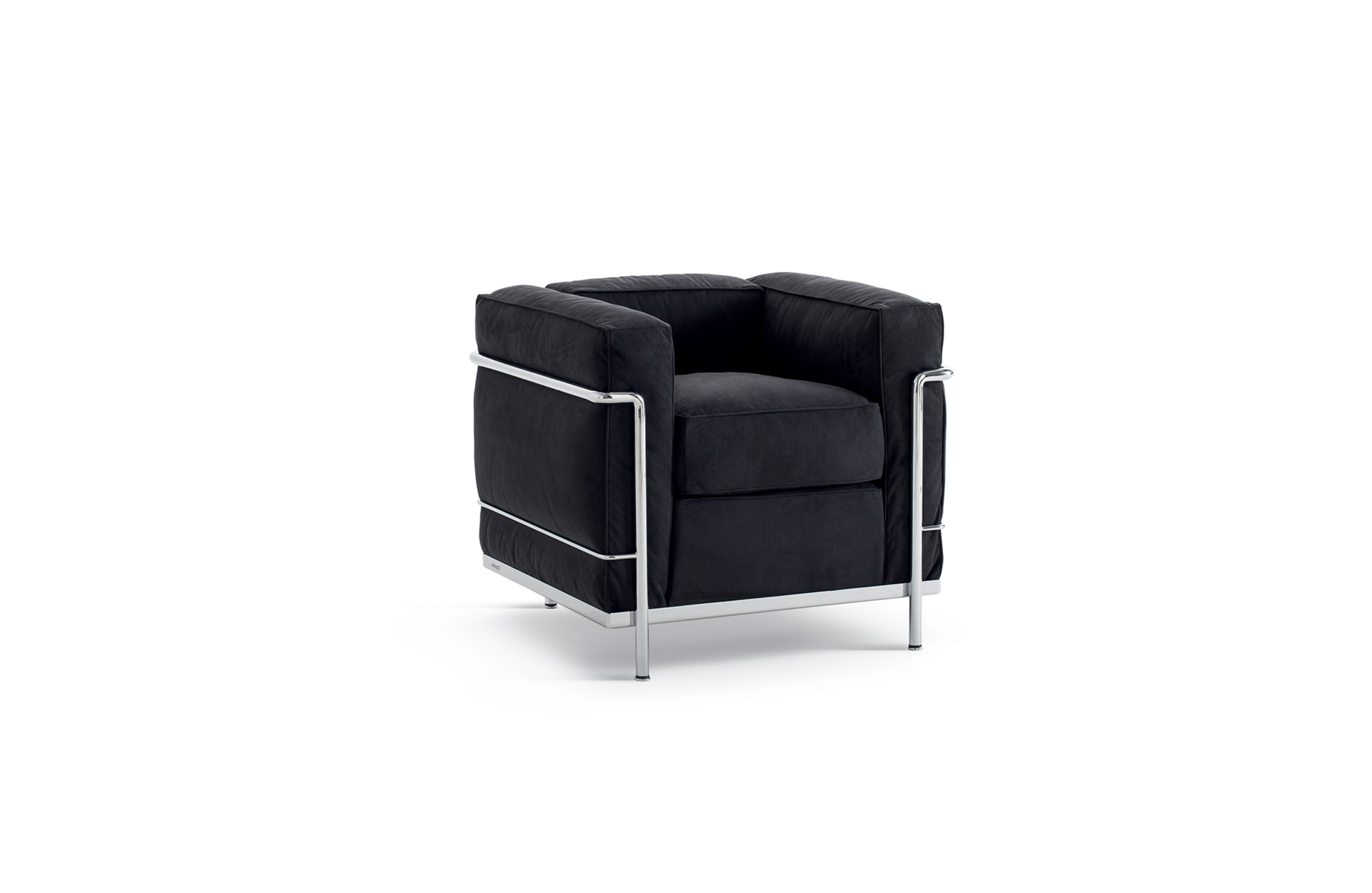 采用CR3三价镀铬钢结构或哑灰色、浅蓝、绿色、棕色、泥土色、象牙白色或黑色珐琅钢架的扶手椅,两人位或三人位沙发及脚凳。柔软的衬垫采用聚氨酯海绵和喷胶棉或聚氨酯芯羽绒棉(脚凳除外)。皮革或布艺面料软包套面。还有仅用于镀铬钢架模型的技术微纤维织物。设计史上另一个永恒的经典。于1928年设计的该款是现代椅的原型。内部靠垫与笼式框架的分离是椅子理性方法的具体肯定。真正的经典之作。