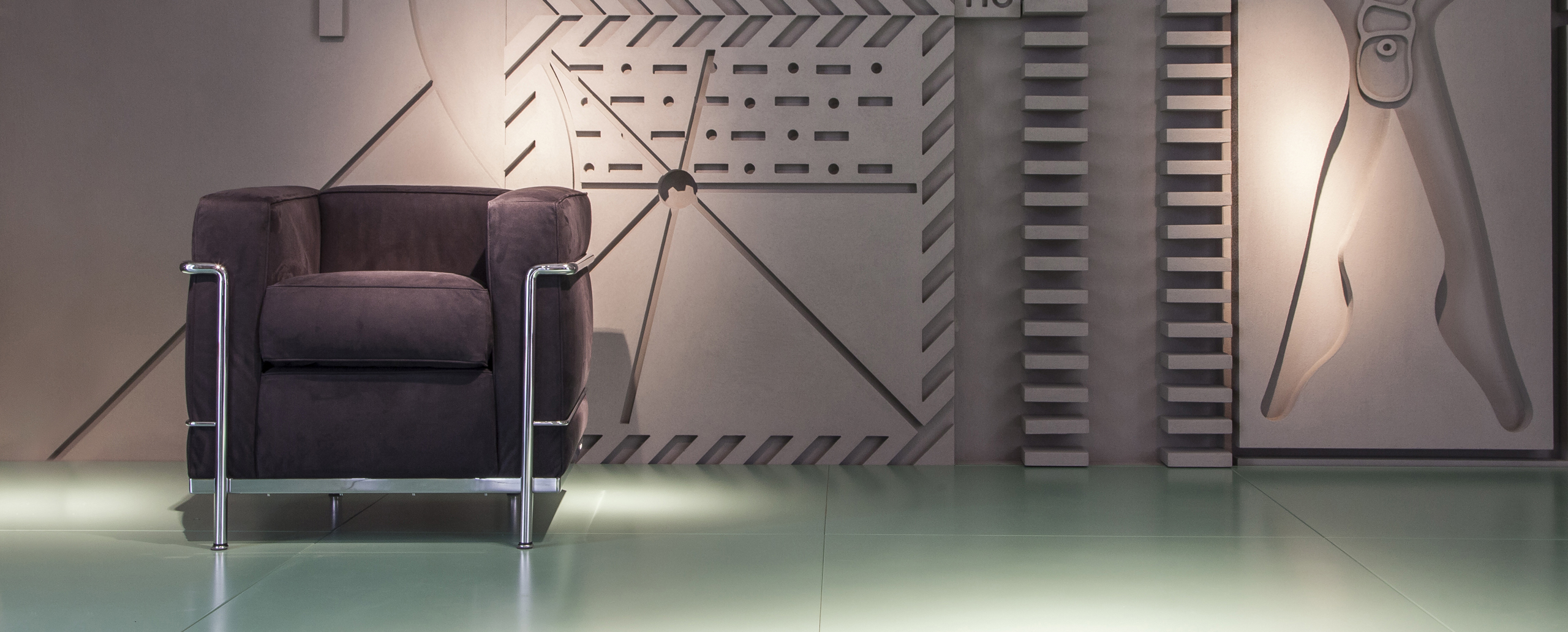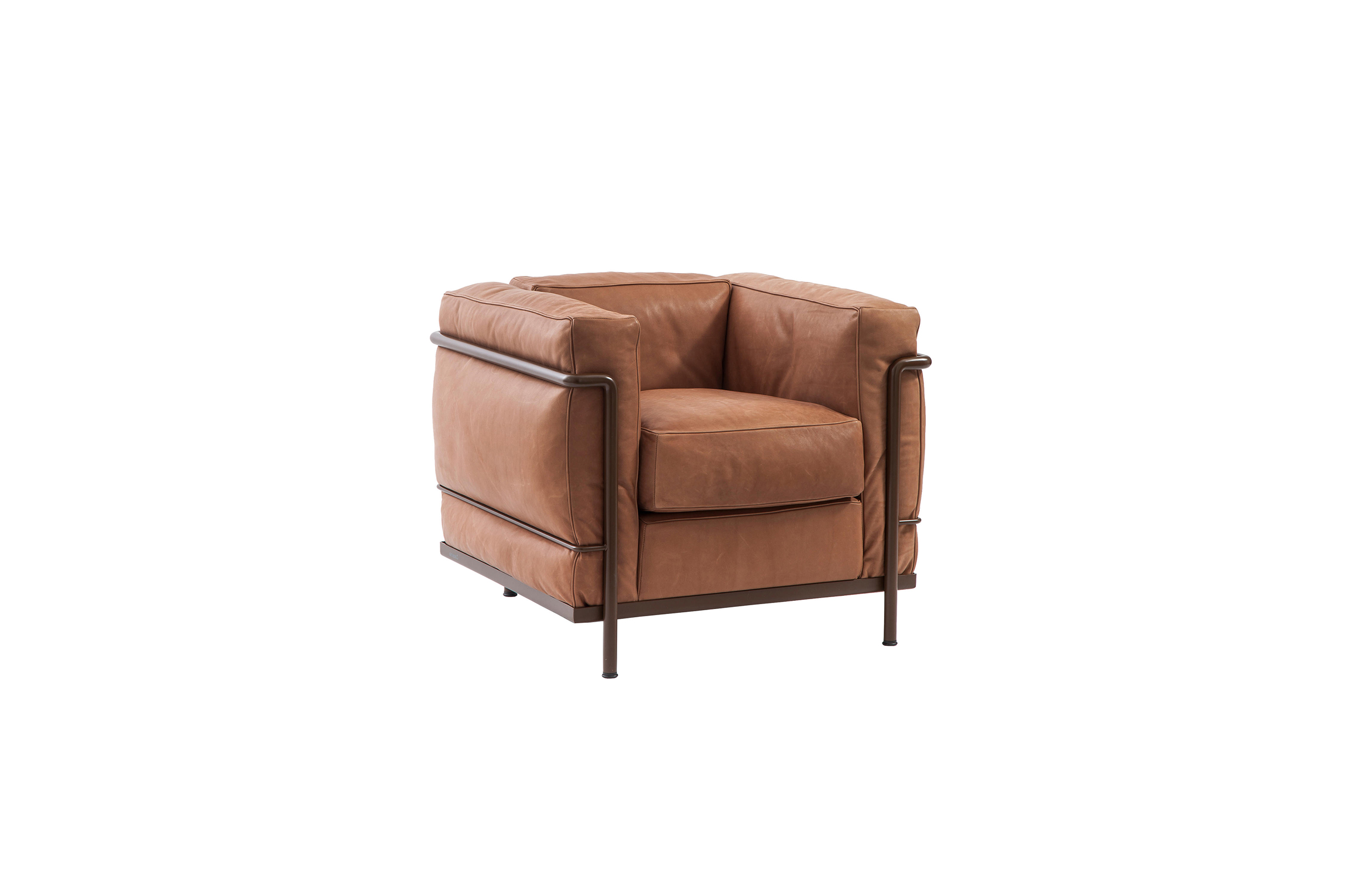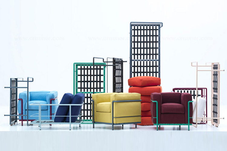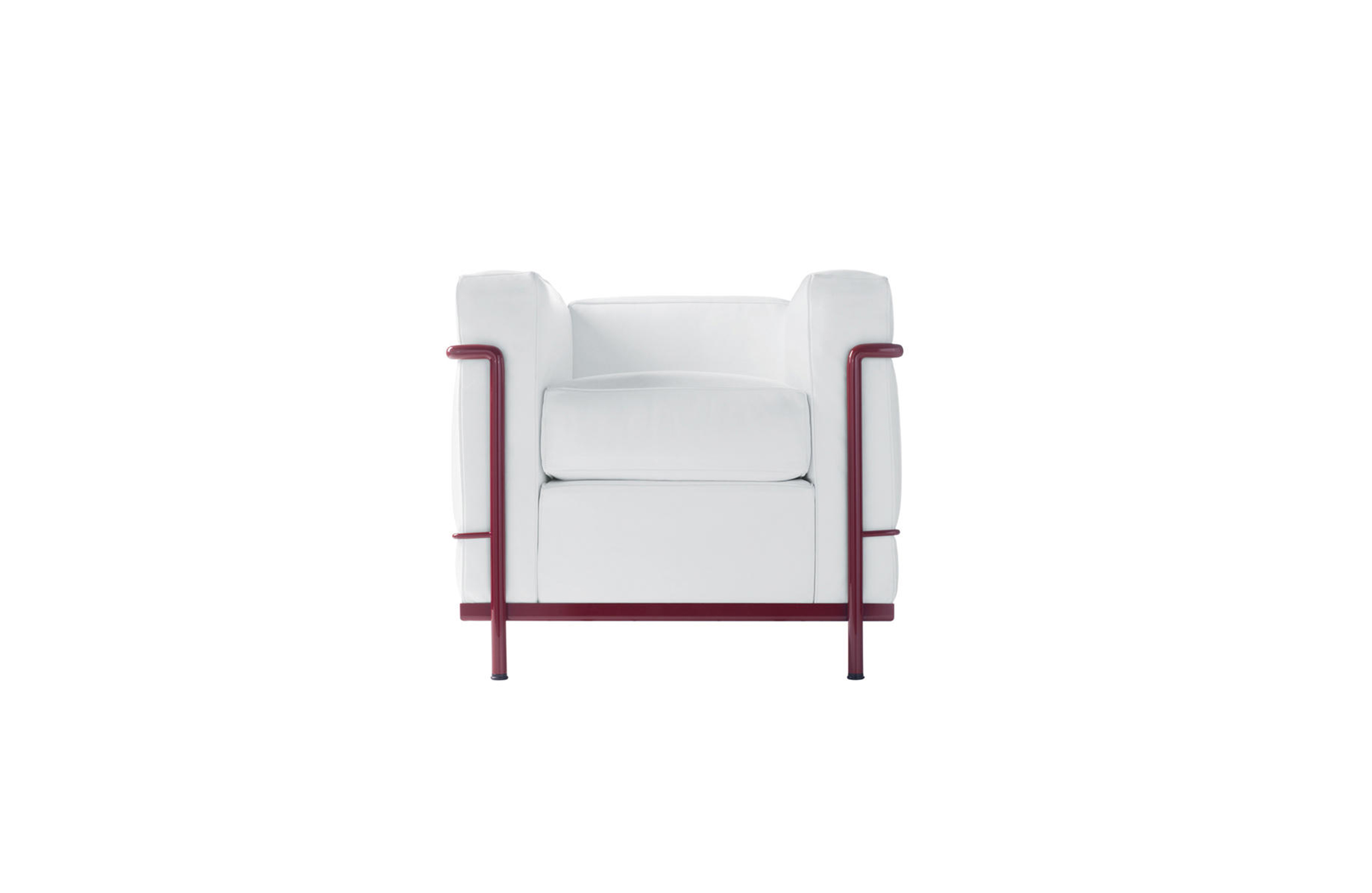 采用CR3三价镀铬钢结构或哑灰色、浅蓝、绿色、棕色、泥土色、象牙白色或黑色珐琅钢架的扶手椅,两人位或三人位沙发及脚凳。柔软的衬垫采用聚氨酯海绵和喷胶棉或聚氨酯芯羽绒棉(脚凳除外)。皮革或布艺面料软包套面。还有仅用于镀铬钢架模型的技术微纤维织物。设计史上另一个永恒的经典。于1928年设计的该款是现代椅的原型。内部靠垫与笼式框架的分离是椅子理性方法的具体肯定。真正的经典之作。