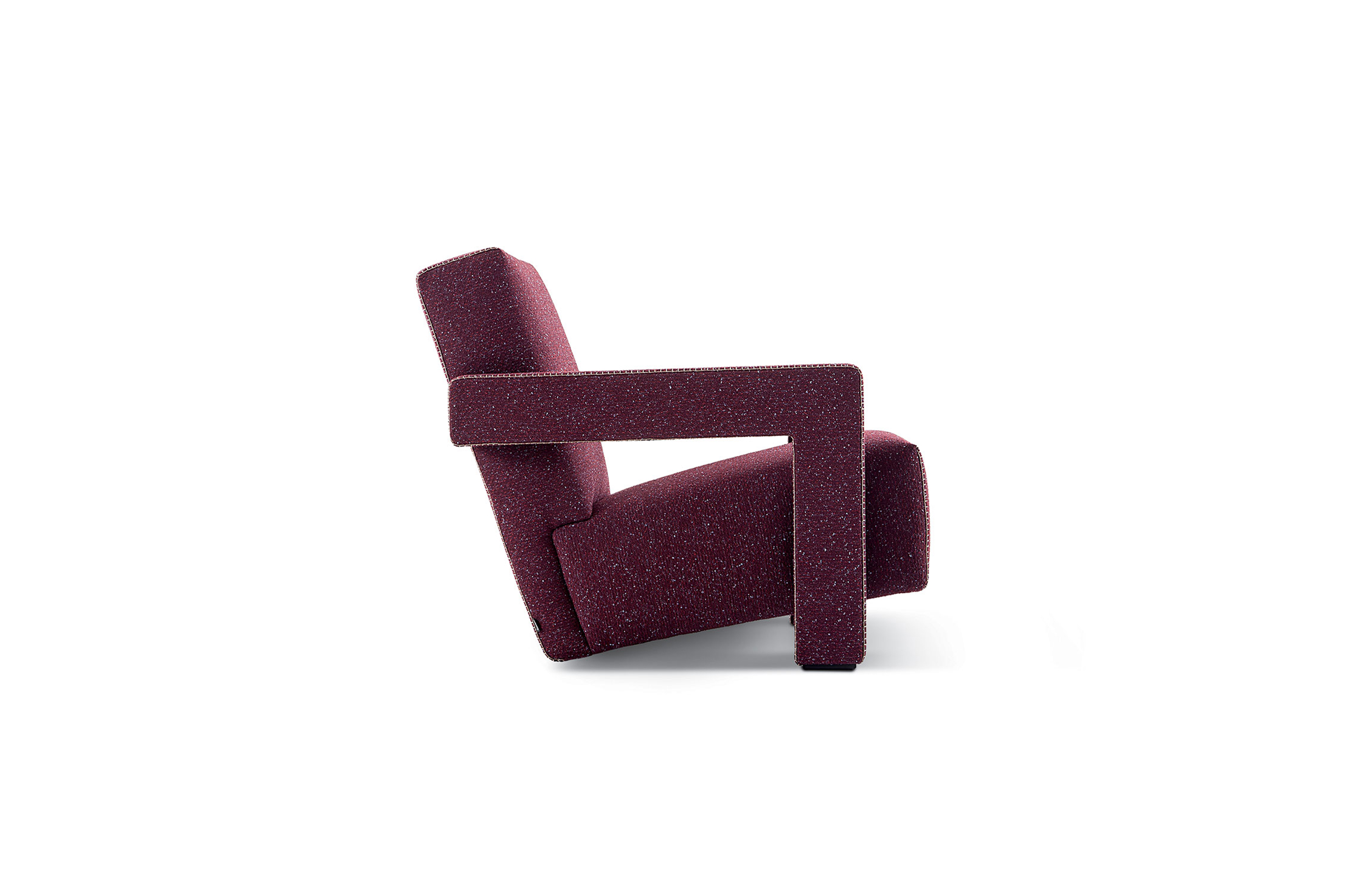 Rietveld是一位荷兰建筑师,他有强烈的实验倾向,他和蒙德里安是1917年新塑料德斯提尔运动的创始人之一,于1935年设计了Utrecht模型。这个模型是为阿姆斯特丹的Metz&co百货公司创建的,因此为大众市场设计,并代表Rietveld决定采用更“市场导向”的方式来舒适和放松。以五种不同颜色的两种可见的拼接(鞍针或齐格扎格)为例,强调了元素的分解。