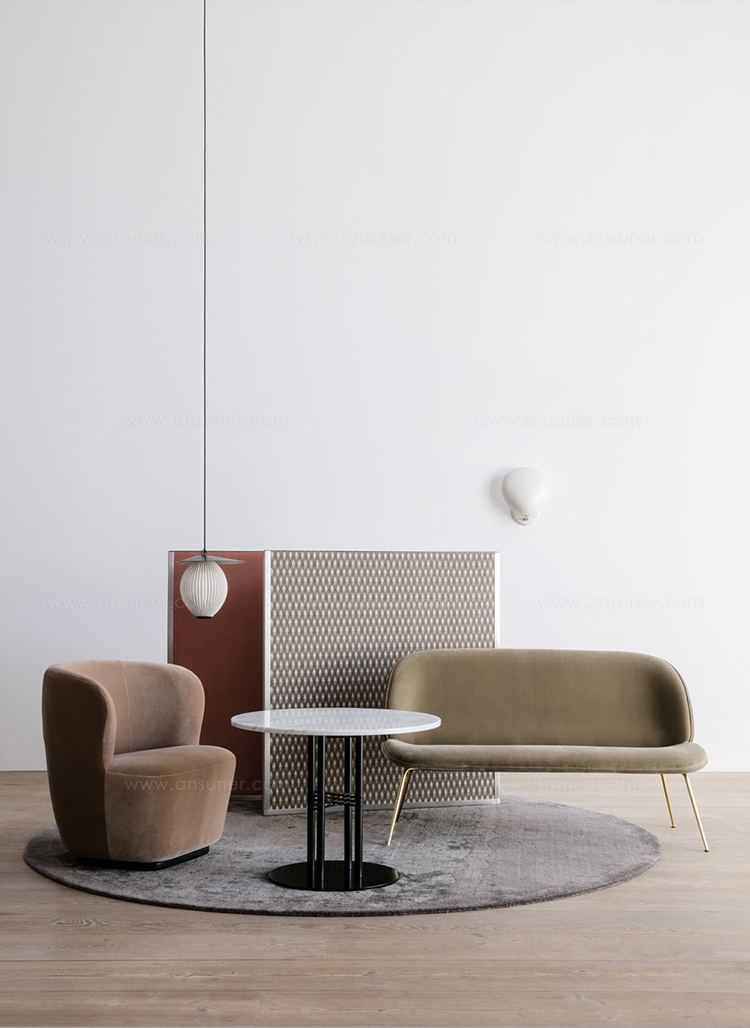 从甲壳虫沙发椅子中得到灵感,细长的甲壳虫沙发有一个圆形、保护性的外壳和一个柔软的内部——就像甲壳虫一样。两人座的甲壳虫沙发与环绕的外壳和柔软、诱人的内饰形成对比,鼓励人们坐下。