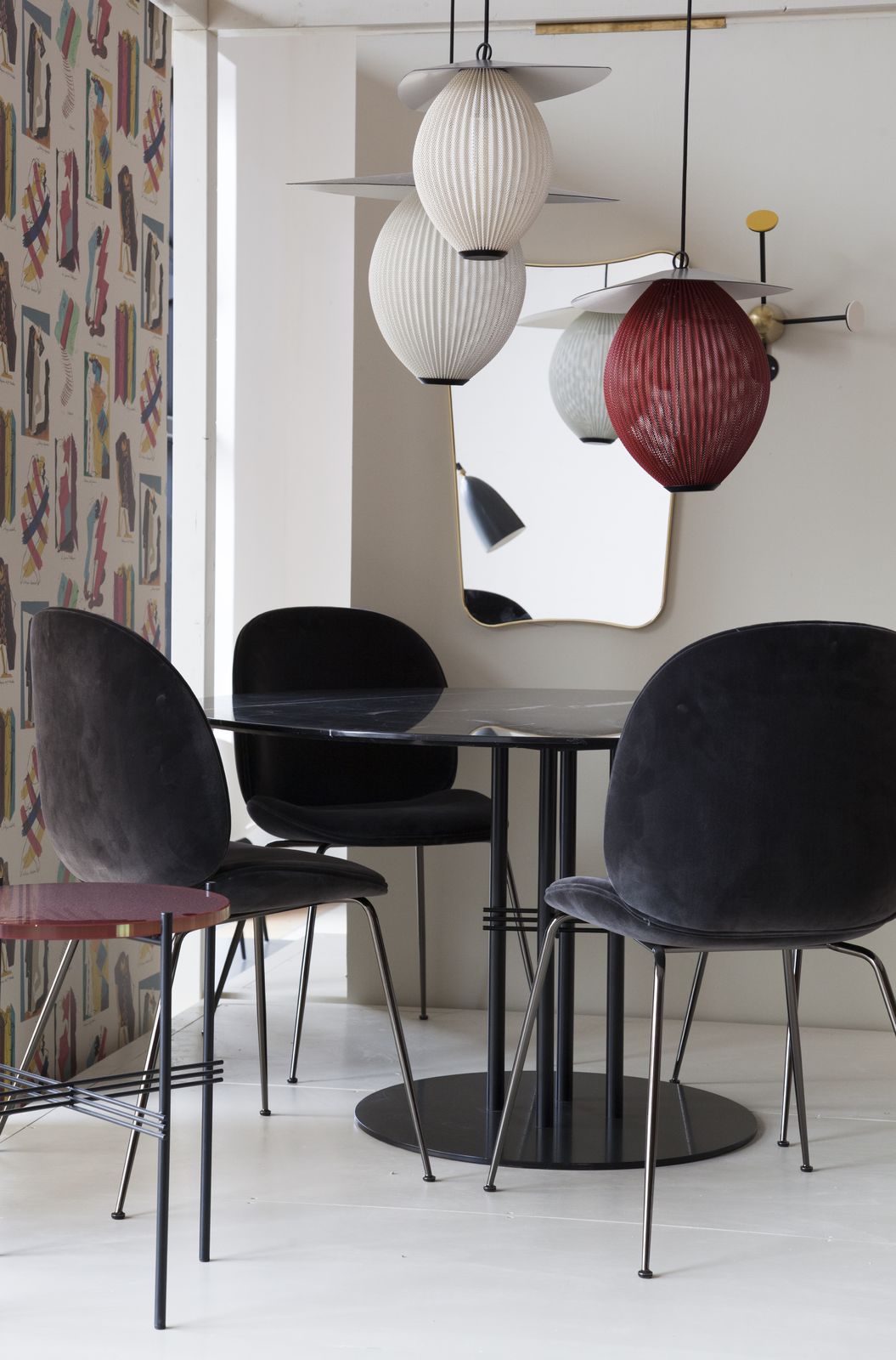 TS圆柱餐桌三个高度,其特征是细长的金属腿和交叉细节,统一到中心柱,专为巴黎Maison du Danemark的Flora Danica餐厅设计的装饰桌。 作为这个宏伟的空间,桌子代表了斯堪的纳维亚极简主义与全球优雅。 TS Column Table为私密用餐,社交和氛围氛围设定了框架,重点放在真实的材料选择和精心制作的工艺上。