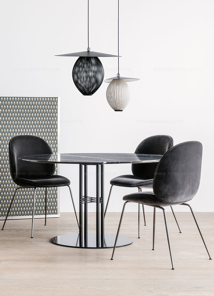 由GamFratesi设计的独家TS系列最初是为哥本哈根着名的The Standard餐厅设计的。 桌子的名字不仅从古老的海关中获得灵感,而且还有美学和材料选择。 对比坚固的桌面与细长的金属底座有很强的参照建筑的结构,并在网站上找到了材料。