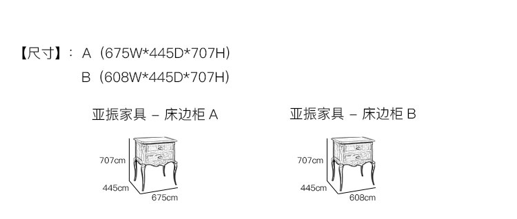 亚振家具 - 床边柜 产品尺寸/示意图